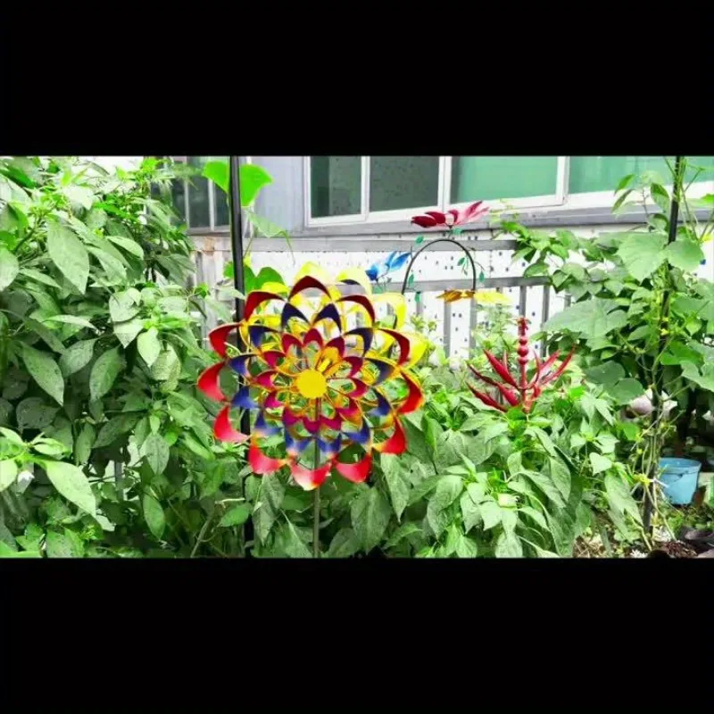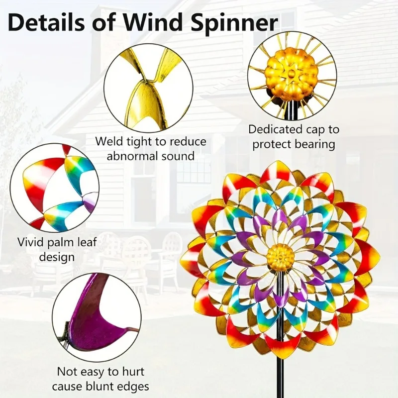 1pcs Rainbow Metal Windmill Cast Iron Garden Stake Lawn & Yard Decor Weathervone Outdoor Wind Spinner for Garden Decoration
