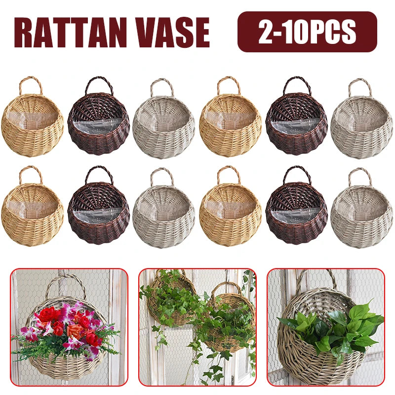 2/4/8/10pcs Wall Hanging Handmade Wicker Rattan Flower Basket Green Vine Pot Planter Hanging Vase Wall Plant Basket For Garden