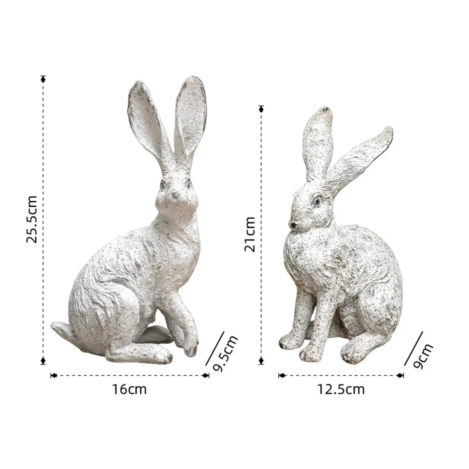 2 Pieces Garden Decor Rabbit Statues Home Decor Crafts Rural Desktop Ornaments for Office Landscape Indoors Outdoors Bedroom