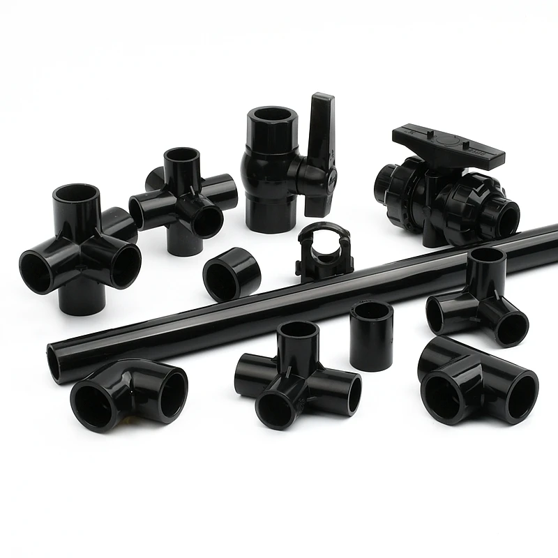 20-63mm Black PVC Pipe Connectors Ball valve Three-way Direct Garden Water Aquarium Fish Tank Drainage Tube Fittings Accessories