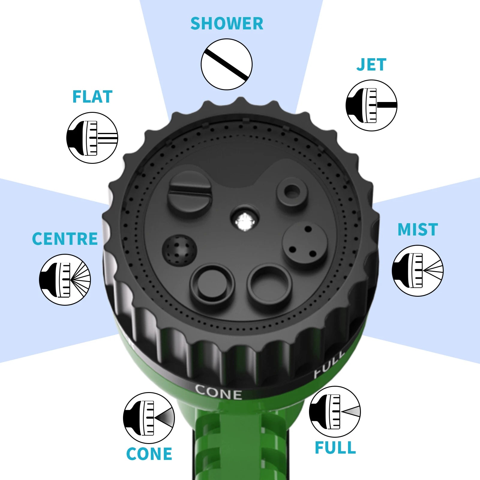 Adjustable Spray Gun Modes: Including mist, centre, cone, full, flat, jet, shower, soake, choose the optimal mode you need, convenient for washing car, watering flowers, cleaning window, you will definitely love this garden hose pipe.
