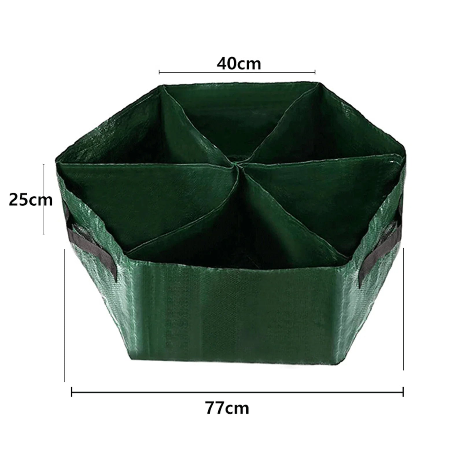 Hexagonal Design for Maximum Space: Our durable hexagonal plants grow bags are designed to maximize space utilization. The unique hexagonal shape allows for efficient packing of plants, ensuring optimal growth and preventing overcrowding. This design also allows for easy stacking and storage when not in use.