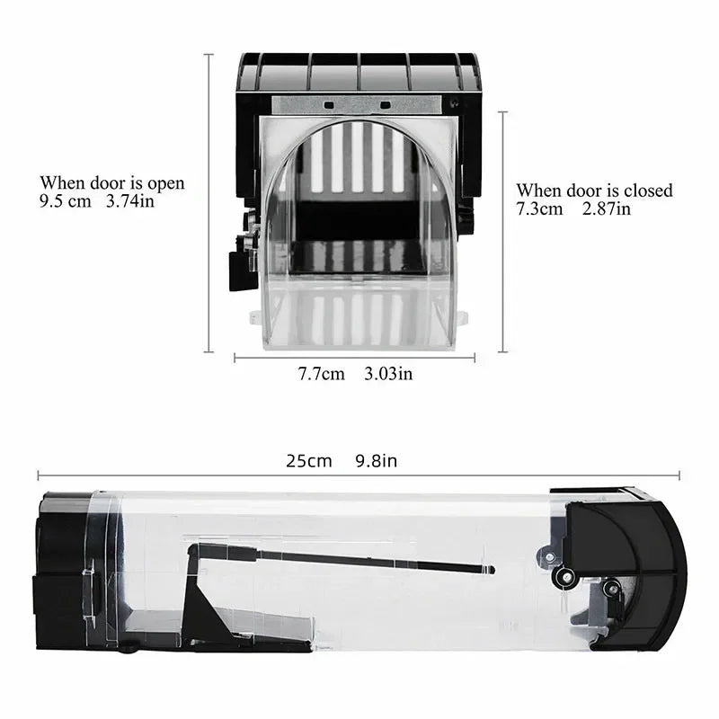 - High quality and resuable, good ABS transparent plastic means trap is easily monitored. Metal door is more firm that the mouse is hard to bite through it,it also can be reused.