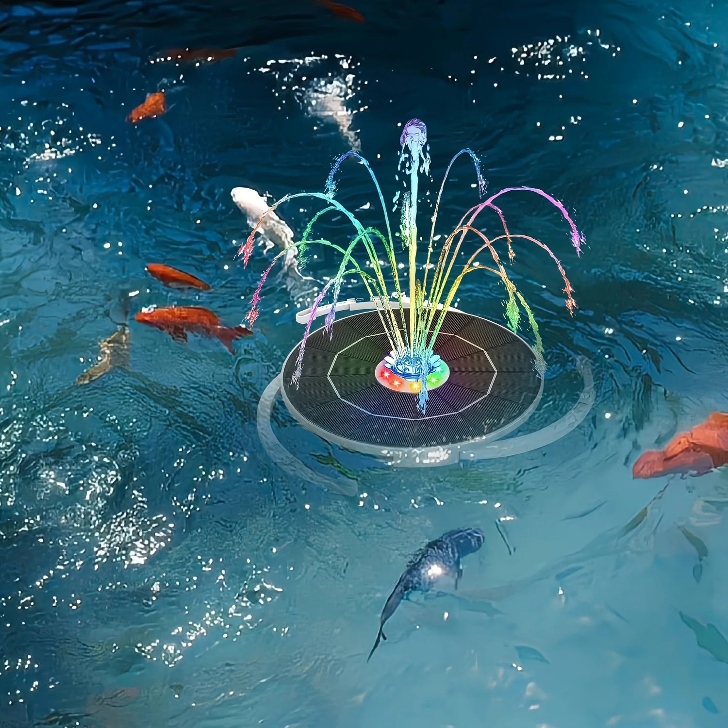 [8 LED solar fountains] The solar fountain pump is equipped with 8 LED lights in 10 colors. The automatic cycle of color operation makes the night scene more beautiful. Equipped with a battery, fully charged on sunny days, and can last for 6 hours after sunset. Suitable for outdoor decoration.