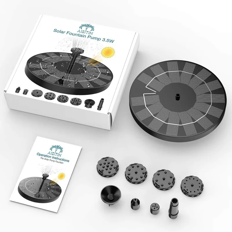 3.5W Solar Fountain Disk Design with 6 Nozzles Fountain Pump for DIY Design Water Splash Powerful Solar Panel Outdoor Decoration