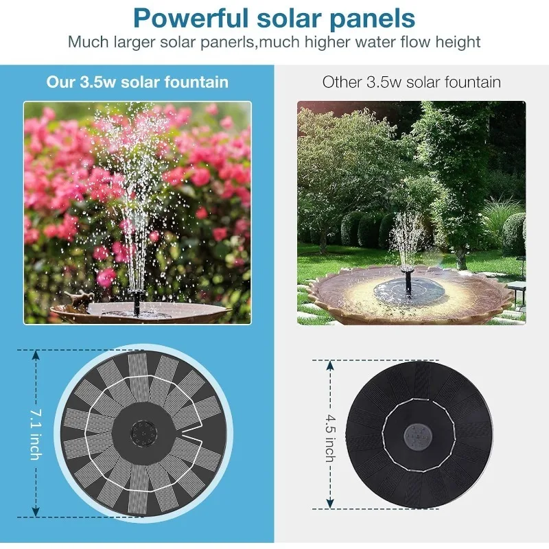 [Eco-friendly And Multi-purpose]: This solar powered fountain pump does not need any power battery, no additional power supply, very environmentally friendly. This environmentally friendly solar fountain pump has a diameter of 7.1 ", which is very suitable for bird baths, fish tanks, ponds, swimming pools, gardens, outdoors, and oxygen circulating water. This fountain will attract hummingbirds and it is very interesting.