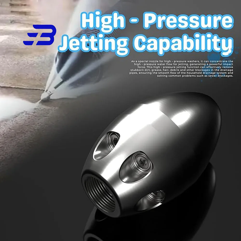 3/8"1/2" Jetter Nozzle for Power Washer, High Pressure Cleaning Pipe Spray Nozzle Portable Steel Drain Sewer Jetter Kit