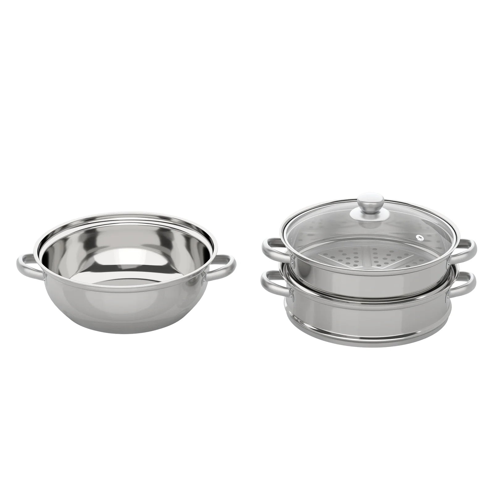 3-Tier 28CM Stainless Steel Steamer Food Cooking + Glass Lid Cookware Steam Pot Set Silver Hot Pot Steamer Veg CookerDescription