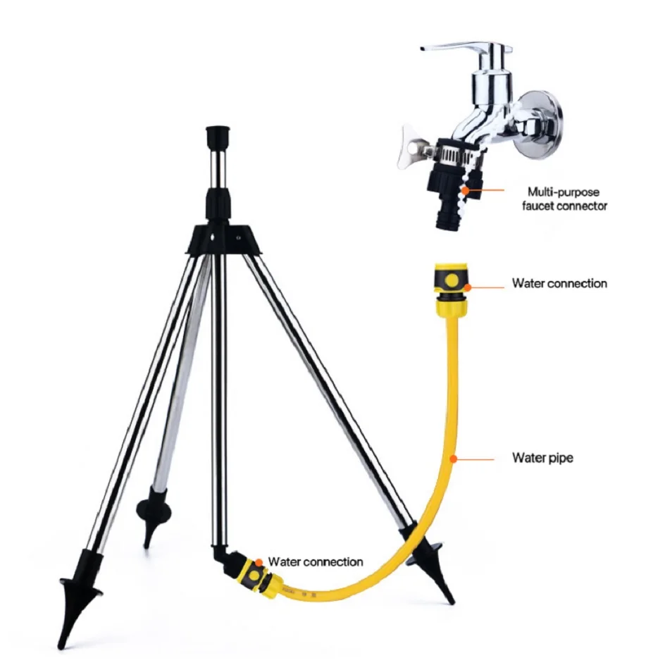 360 Rotary Irrigation Sprinkler Head with Tripod Telescopic Support Automatic Rotating Sprayer Garden Lawn Watering Sprinkler