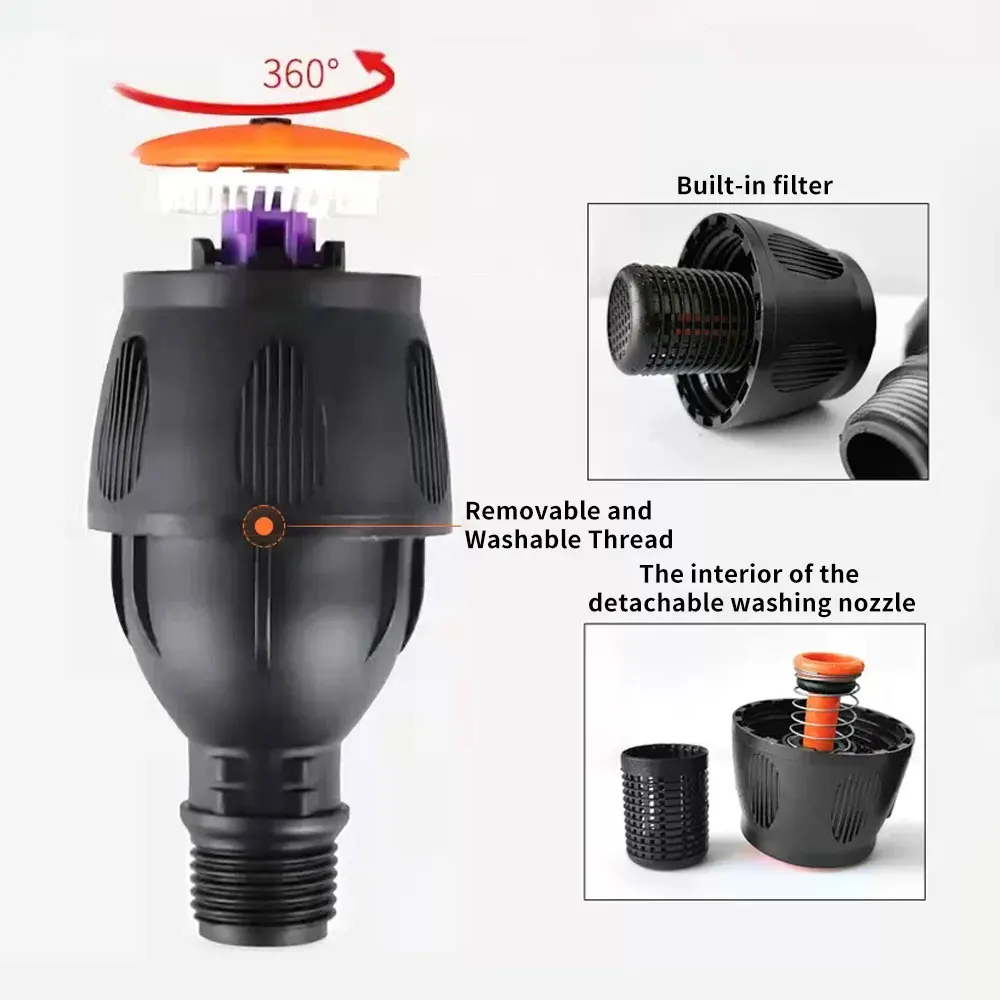 360-degree rotating spray without any other added equipment Coverage Area : Extra Large, Coverage Type : Circular, Multi-Pattern.