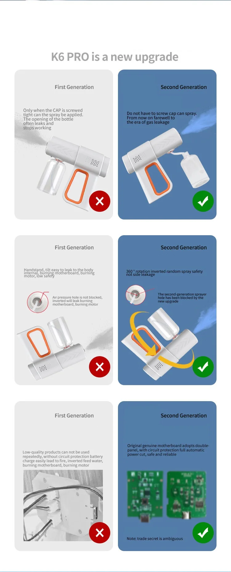 380ml Professional Handheld Electric Nano Sprayer Machine Wireless Alcohol Sanitizer Disinfectant Fogger Touchless Sanitization