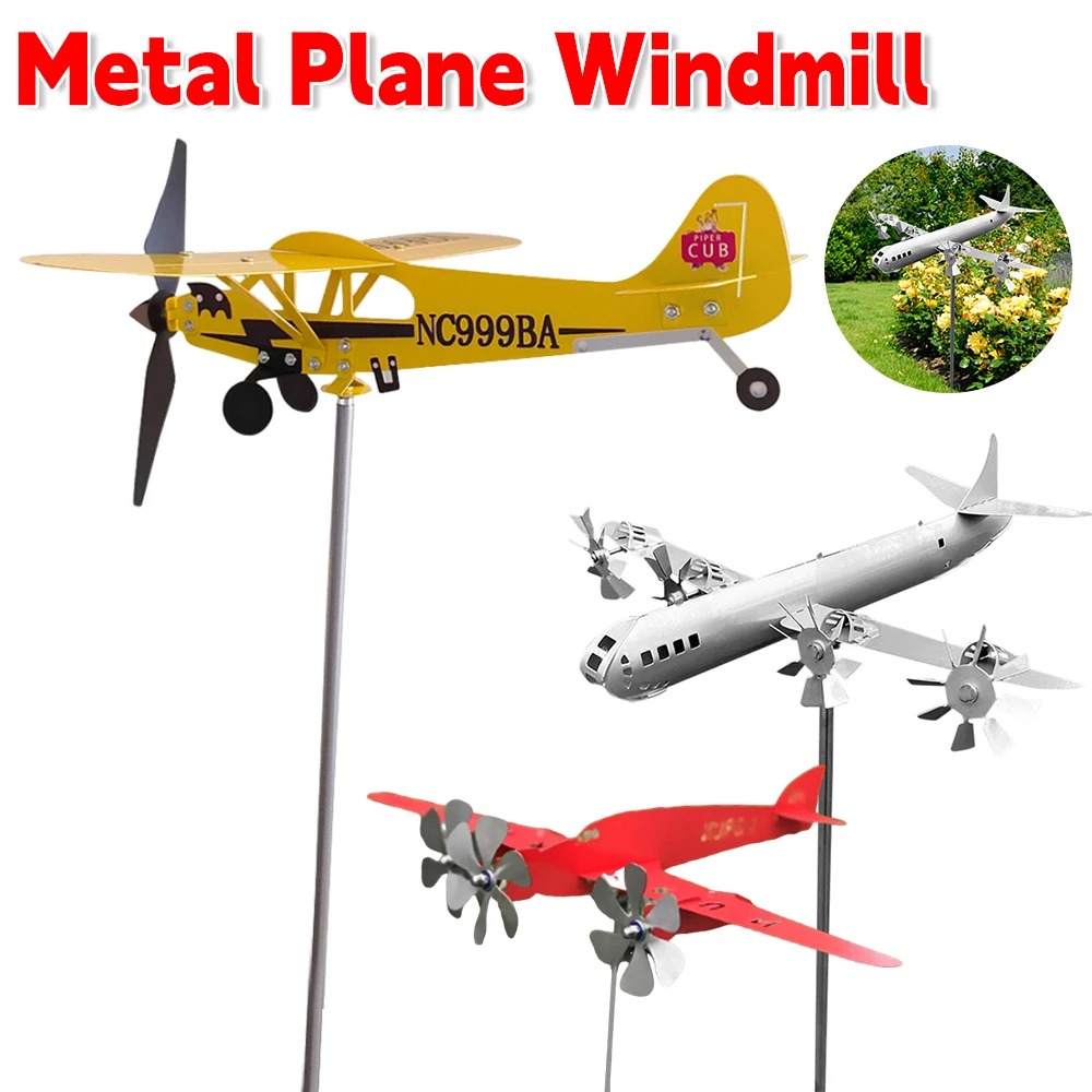 3D Plane Garden Weather Vane Plug Decor Anti-corrosion Metal Airplane Plug-in Windmill Weatherproof Ornaments for Outdoor Garden