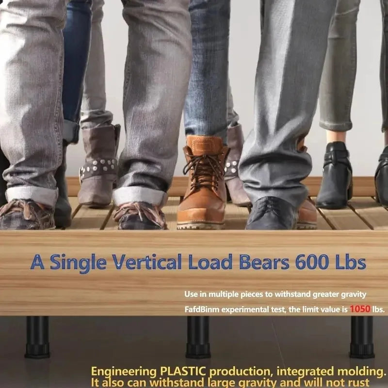 - Each leg supports up to 250KG (550 lbs); 4 legs combine for stable support of large beds, cabinets, and heavy furniture.
