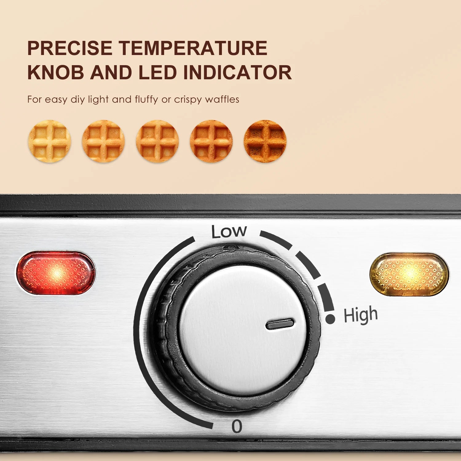 4-Slice Belgian Waffle Maker, 3 Browning Levels with Nonstick Square Waffler Iron Plates, 1200 Watts, Compact Design