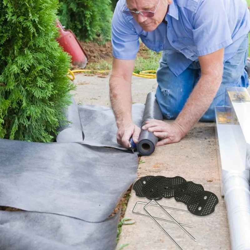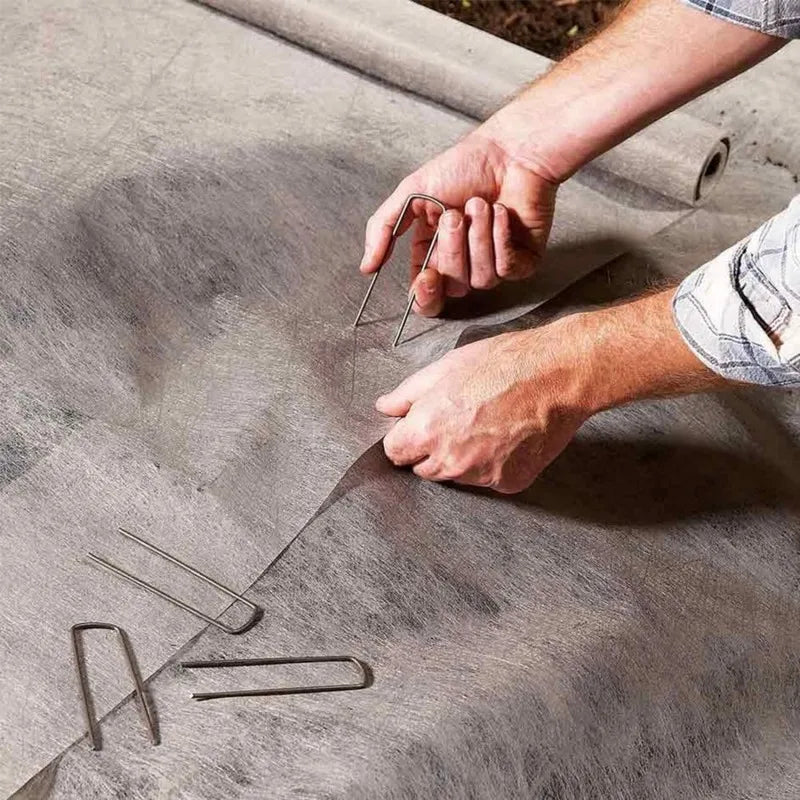 40PCS Garden Pegs U-shaped Ground Pegs Heavy Duty Metal Pins Spikes Ground Staple with 30pcs Buffer Washers for Securing Weed