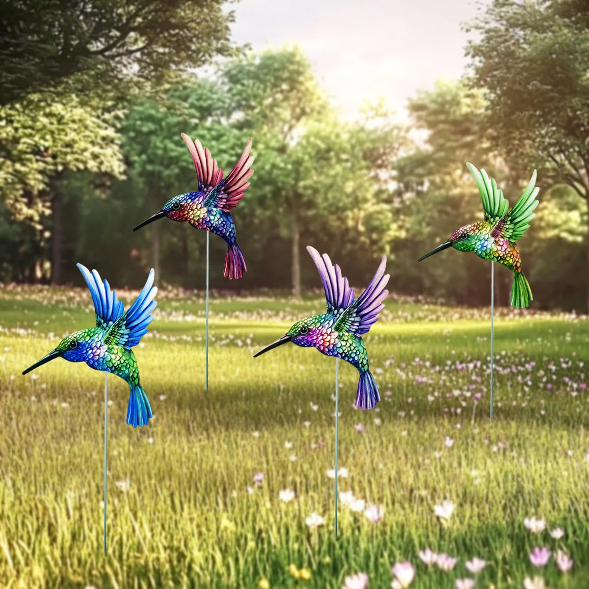 4PCS Metal Hummingbird Stakes Art Sculpture Outdoor Waterproof Iron Ornament Garden/Home Decor Yard Lawn Patio Garden Bird Decor