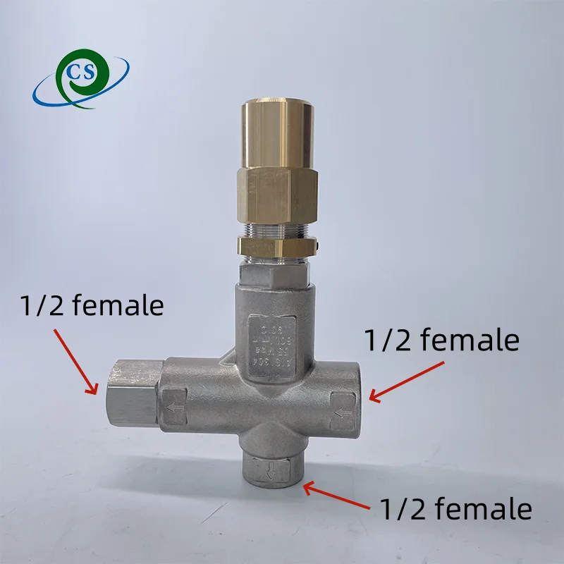 Products Description Product Name:550 bar Adjustable Unloader Valves Material:Brass,Stainless steel Thread Type:G Thread Size:G1/2F Inlet thread: G1/2 Female Outlet thread: G1/2Female Return Return thread:G1/2Female Max pressure:600bar Flow Rate:80lpm