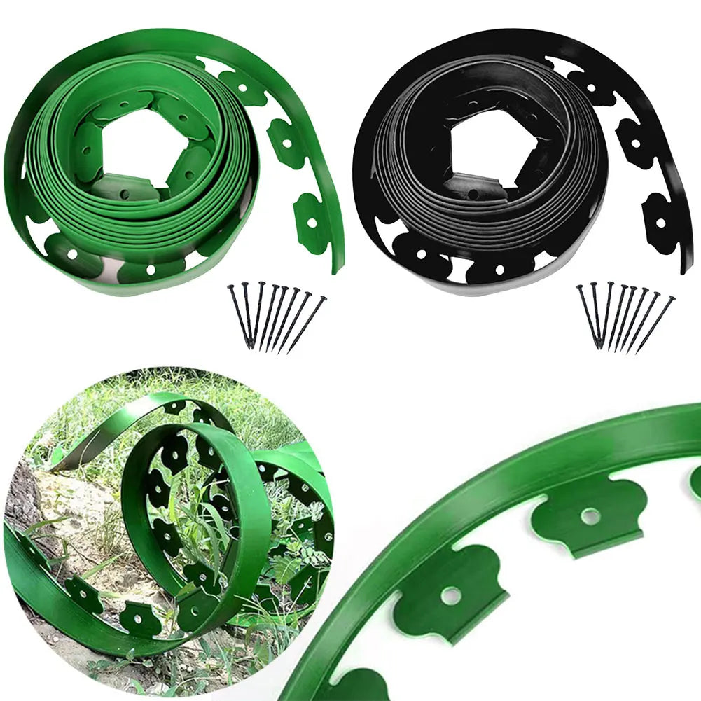 5M/10M Garden Grass Lawn Edge Border Fence With 15 Spikes Path Flexible Lawn Edging Border Fence Outdoor Landscape Garden Decor
