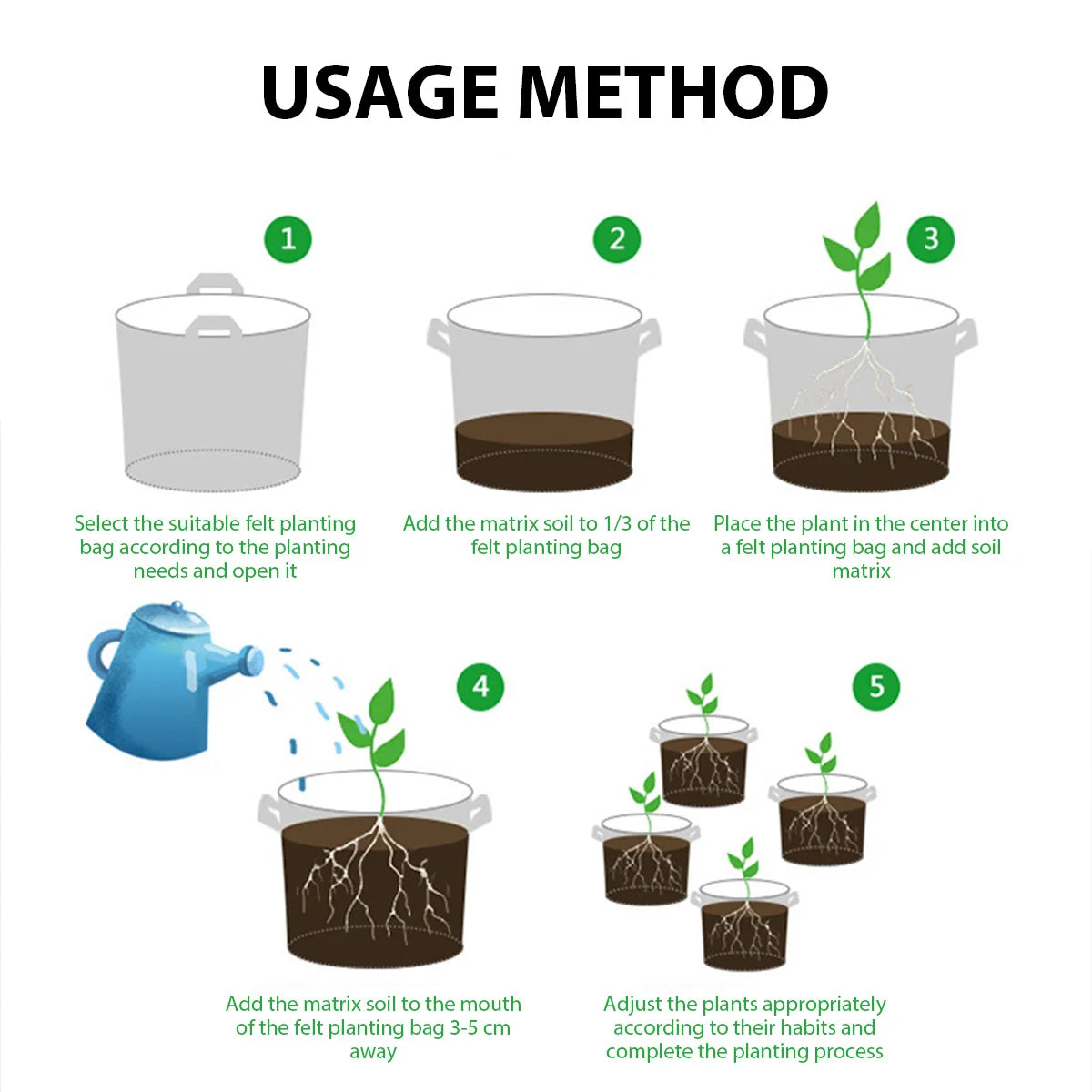 5PCS Felt Grow Bags 5-15 Gallon Potato Fabric Planting Bags Vegetable Strawberry Seedling Bags Breathable Flower Planting Bags