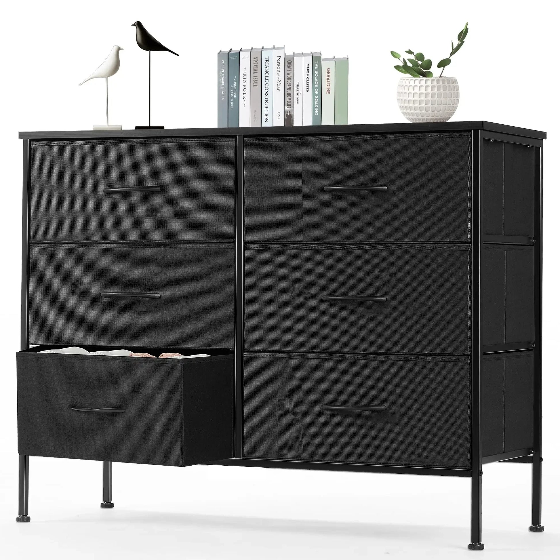 6 Drawer Dresser, Wide Chest Of Drawers Nightstand Storage Tower Storage Dresser Fabric Dresser With Wood Top for Living Room