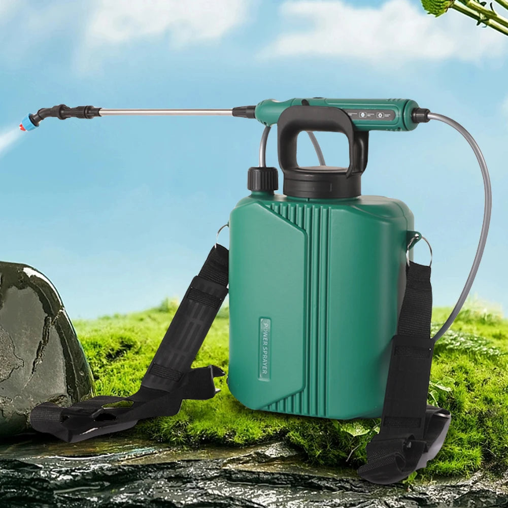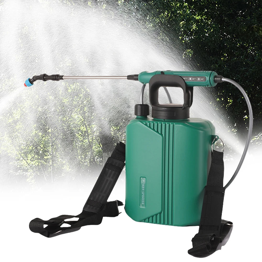 Feature: 1.Ergonomic Battery Powered Design: Equipped with an ergonomic handle and a self-priming pump, this shoulder style electric sprayer offers automatic spray at the push of a button, saving time and effort compared to manual pumps. 2.Dual Shoulder Construction: The dual shoulder design of this automatic garden plant mister evenly distributes weight, providing comfort and portability during prolonged outdoor tasks. 3.Material Composition: Crafted with high-quality materials, this powerful electric sprayer is sturdy and abrasion-resistant, built to withstand various challenging environments. 4.Long-lasting Battery Performance: Powered by a 3.7 V rechargeable lithium battery with a 2000mAh capacity, our battery powered sprayer delivers up to 3.5 hours of continuous powerful spray on a single charge. 5.Versatile Practical Design: Featuring a wide opening for easy filling and a 6L capacity, this garden sprayer has an ergonomic design with portable dual shoulder straps suited for indoor or outdoor use. Specification: Origin: Mainland China Name: Electric spray pot Material: ABS+stainless steel+PVC Color: green Capacity of spray pot: 6L Battery capacity: 2000mAh Rated voltage: 3.7V Rated power: 3W Working pressure: 1.2-2.0bar Rated flow: ≥0.15L/min Use time: 3.5H Charging voltage: 5V 1A (it is recommended to use a mobile phone charger, fast charging is strictly prohibited, the red light is on when charging, the blue light is on when full, and it takes about 4 hours to fully charge) Charging method: Type-C Size: 36*21*13.5cm Scope of use: watering or spraying garden lawn plants, fertilizing, pest control, household cleaning, car washing, etc.