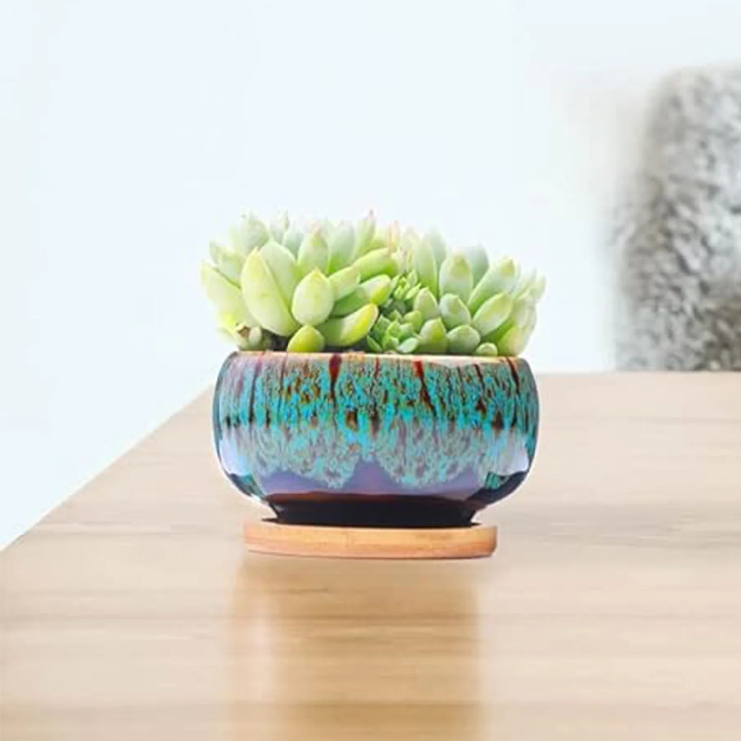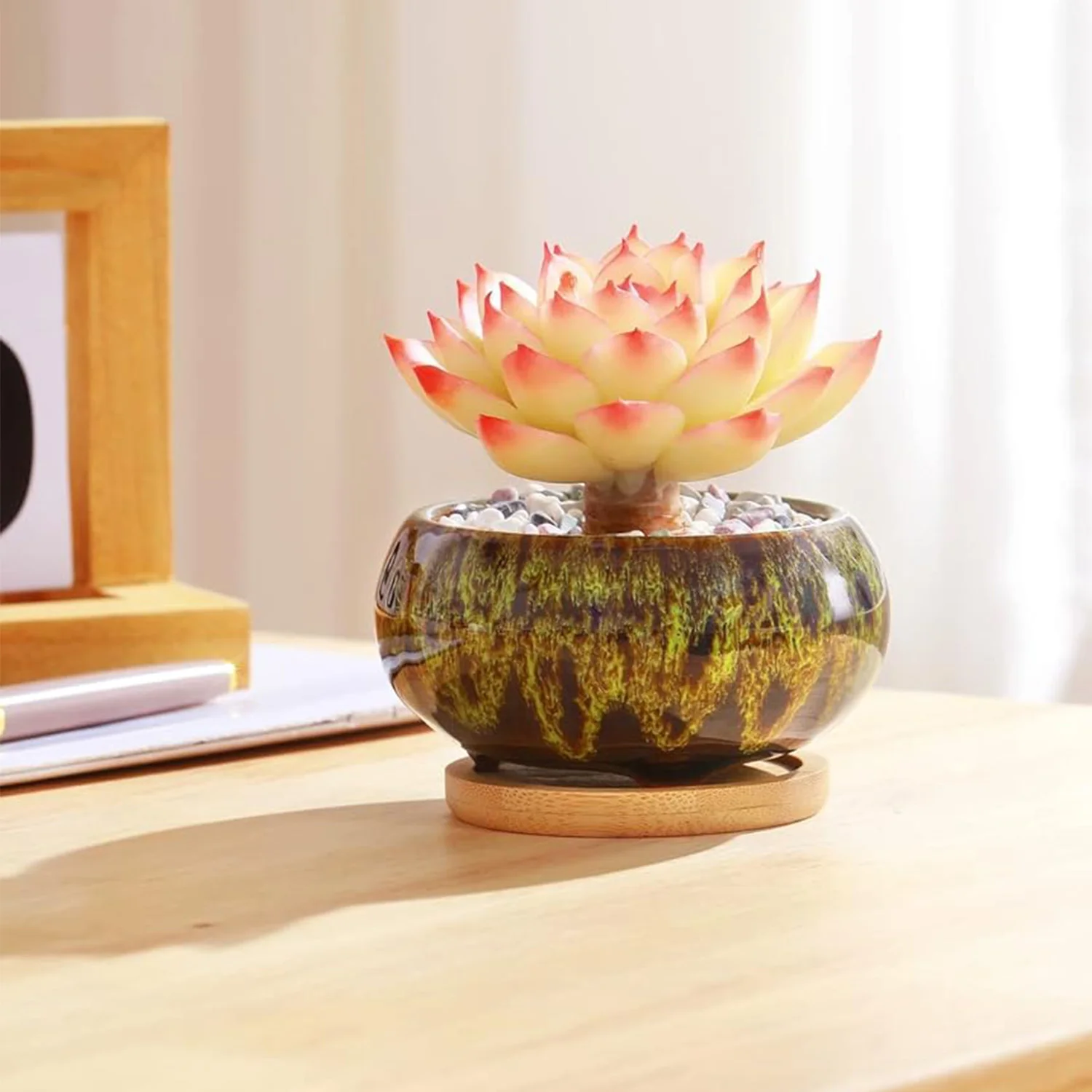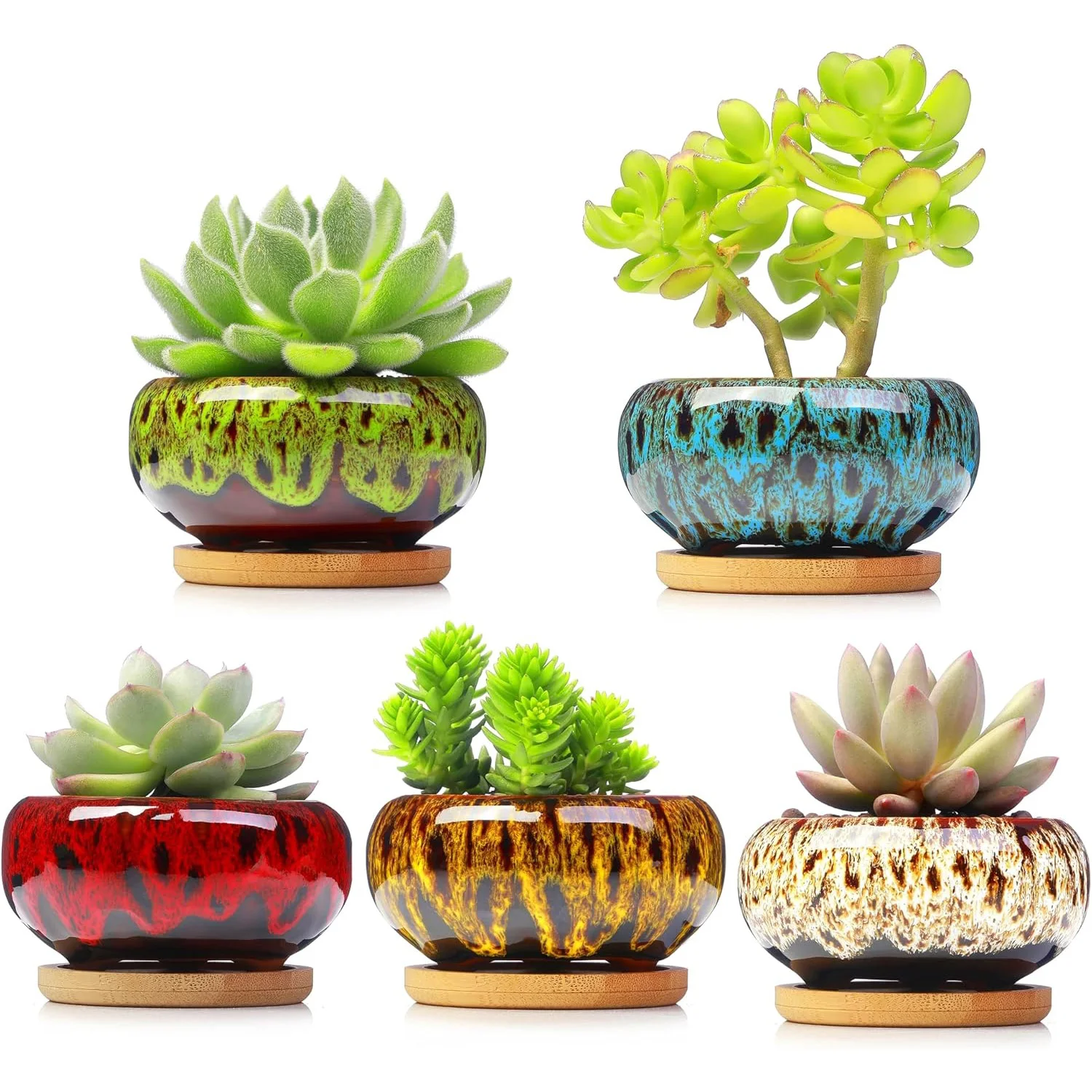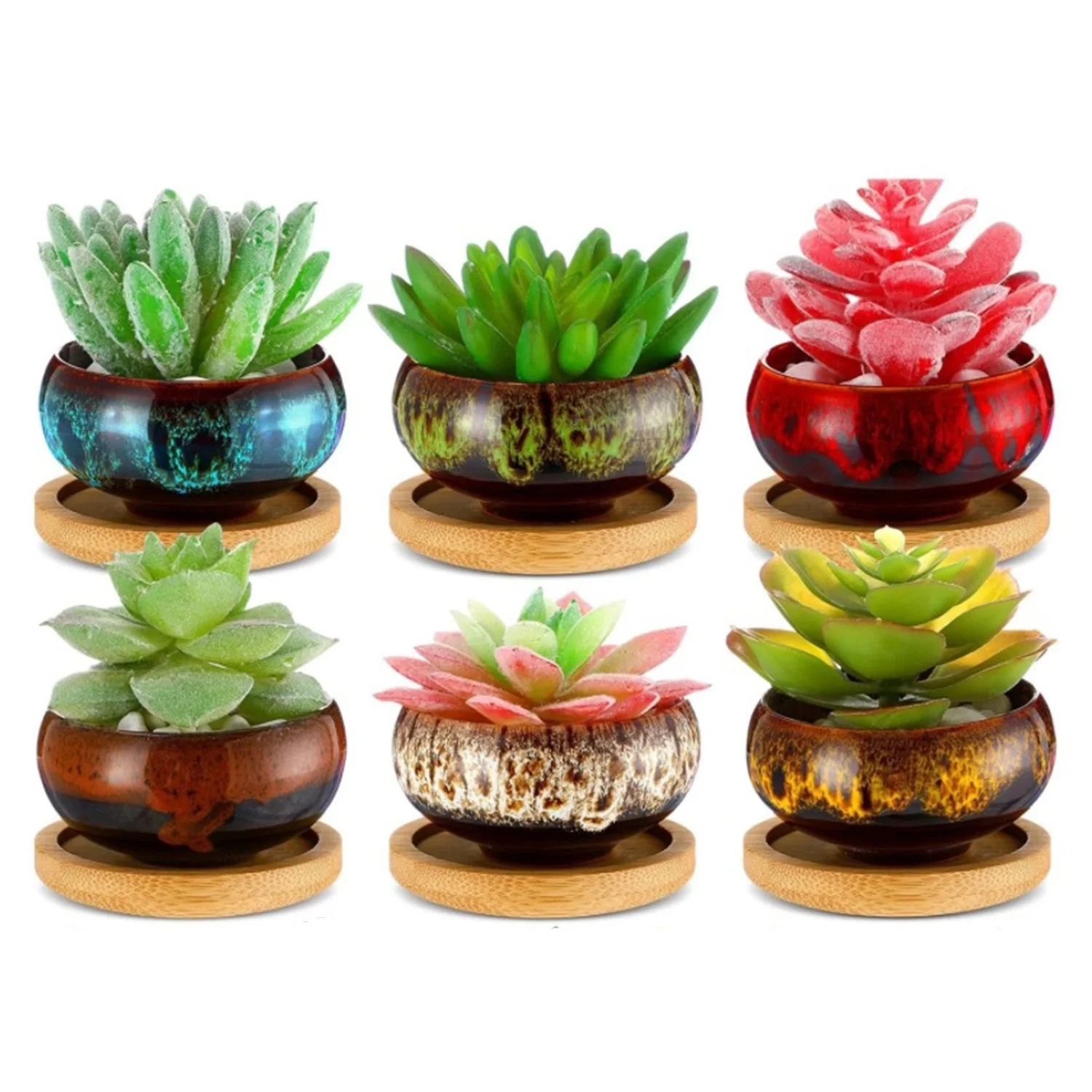 6Pc Ceramic Flower Pots Kiln Change Mini Wicker Bonsai Plant Flowerpot Mold Planters For Yard Garden Desktop Decor Flowers Ceram