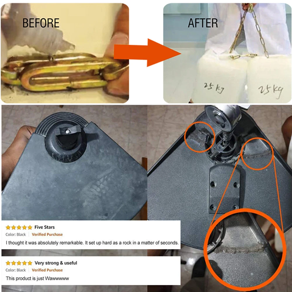 ★Strong Cohesive Force: Adhesive Glue can repair almost anything with unique reinforcing and filling capabilities (Metal, Steel, Plastic, Wood, Rubber, Ceramic, etc.)