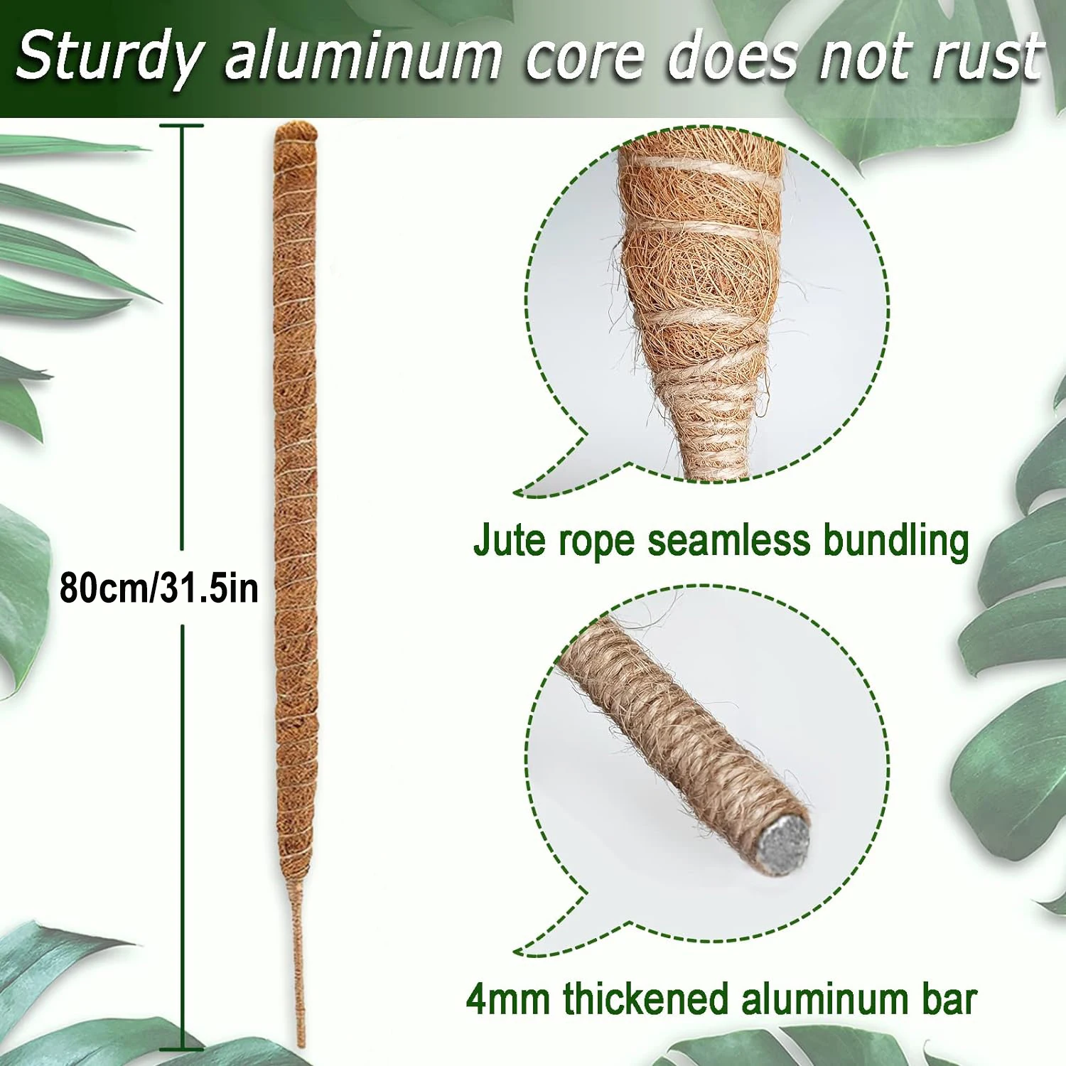 80cm Bendable Coco Coir Moss Pole Plant Cage Climbing Pole Plant Support Extension for Monstera Plant To Grow Upward Garden