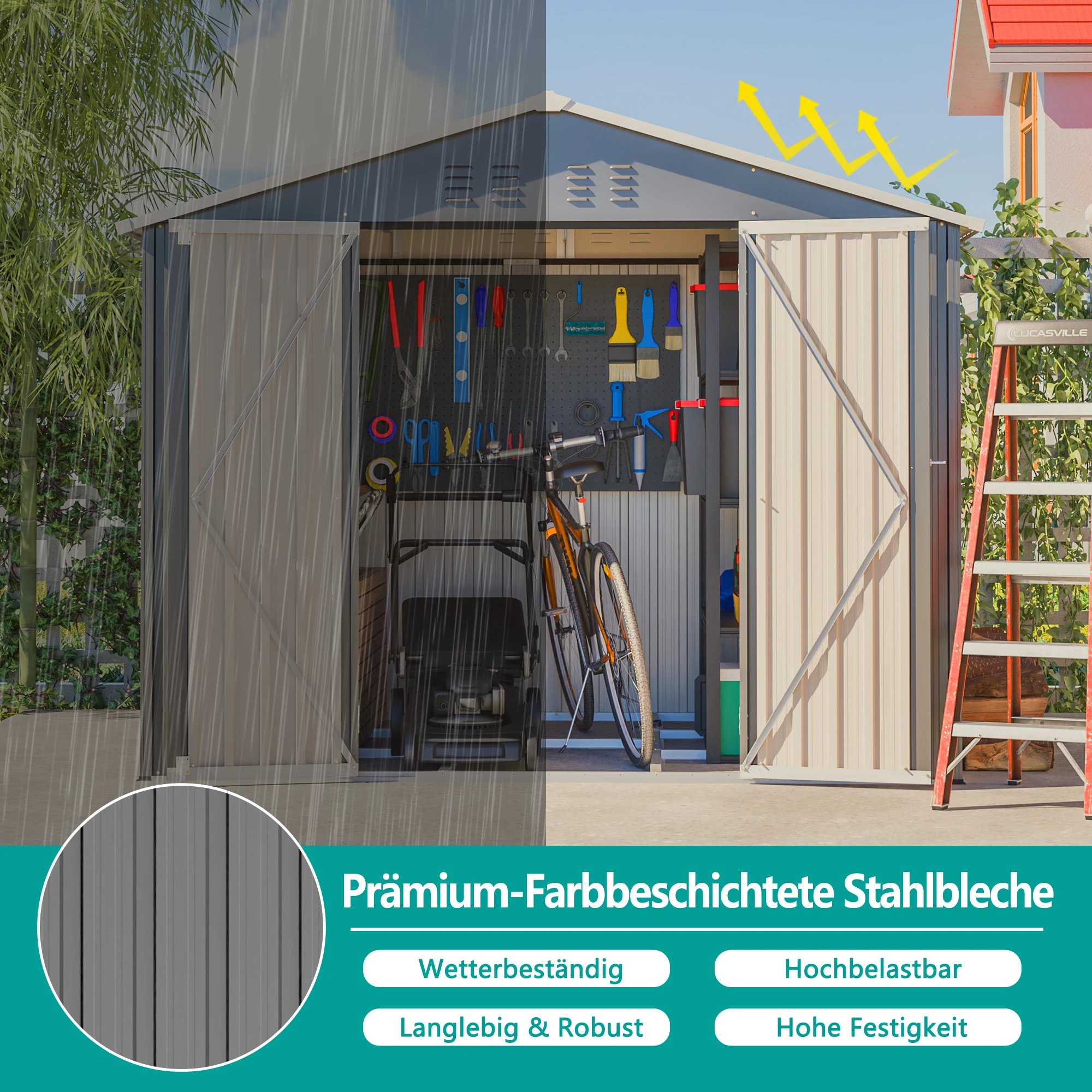 8x6FT Graues Metall-Tool-Shed mit Klapptür, Anthrazit-Farbe – Ideal für Gartengeräte und Werkzeugaufbewahrung