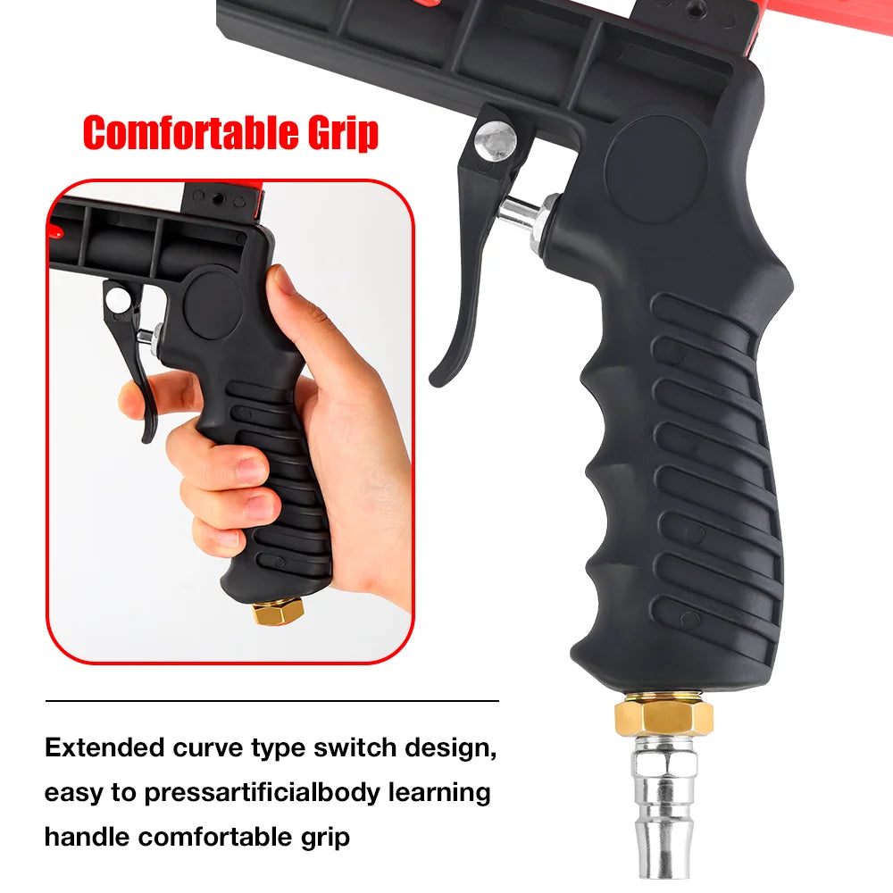SAFE AND RELIABLE-Safety plate type start and stop switch, more safe and reliable, gun nozzle red switch can adjust sandblast flowing.