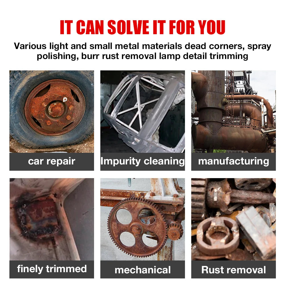 SUITABLE FOR-Suitable for spray polishing, burr, derusting and other details trimming of all kinds of metal material dead corner and surface in manufacturing industry, automobile maintenance, and mechanical equipment industry, etc.