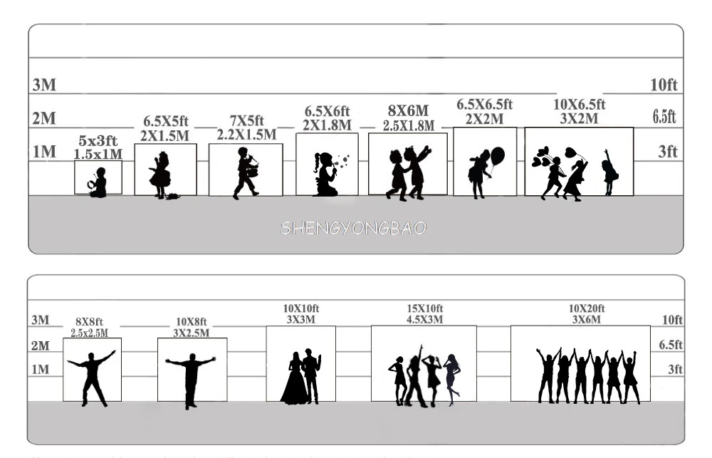 1 ,Background size is: Width x Height,please attention all the sizes displayed is seamless,the widthest material is 300cm,so even 300*500cm,it is seamless also..