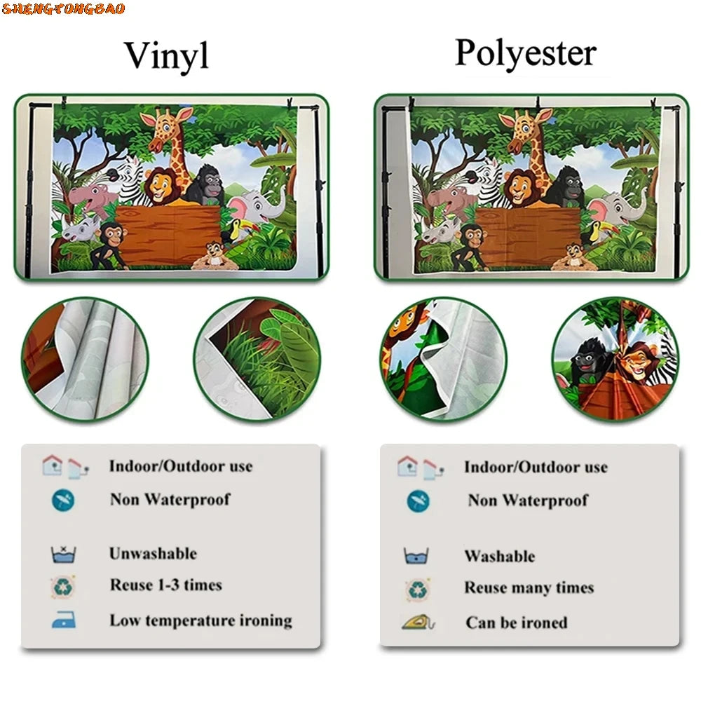 2.Polyester (the Default material in the Product Description is Thin Vinyl/Thin Cloth,if you want buy Polyester Material Background ,Please contact us ,we will do it for you also)
