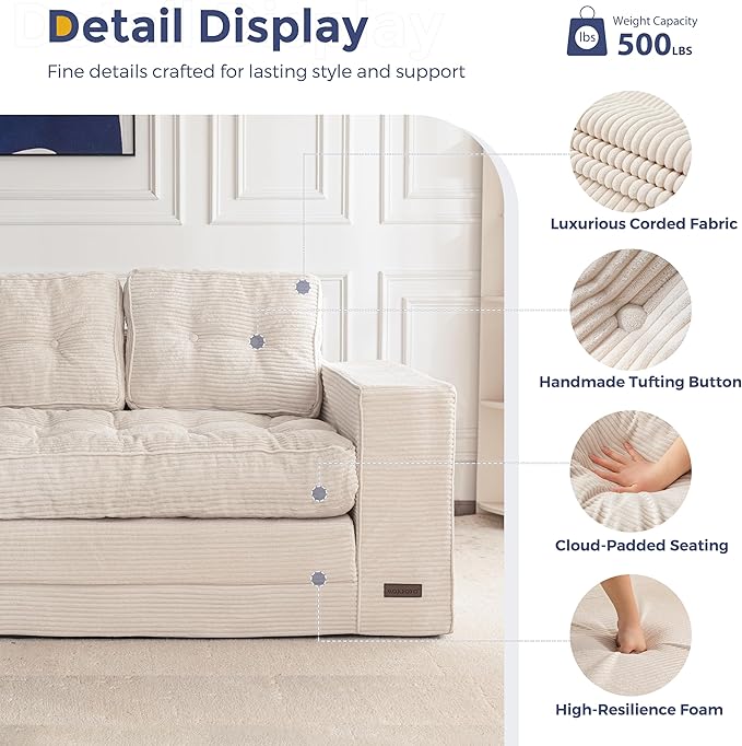 - Corded Fabric and Tufted Craft: Corded fabric has a soft and delicate touch, with good breathability and wear resistance. The unique tufted process not only enhances the firmness of the fabric, but also adds a touch of retro and fashionable feeling to the overall design