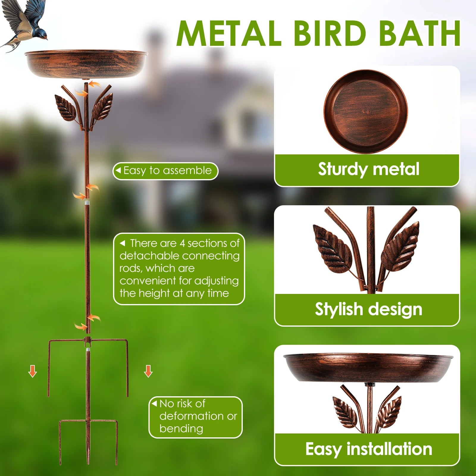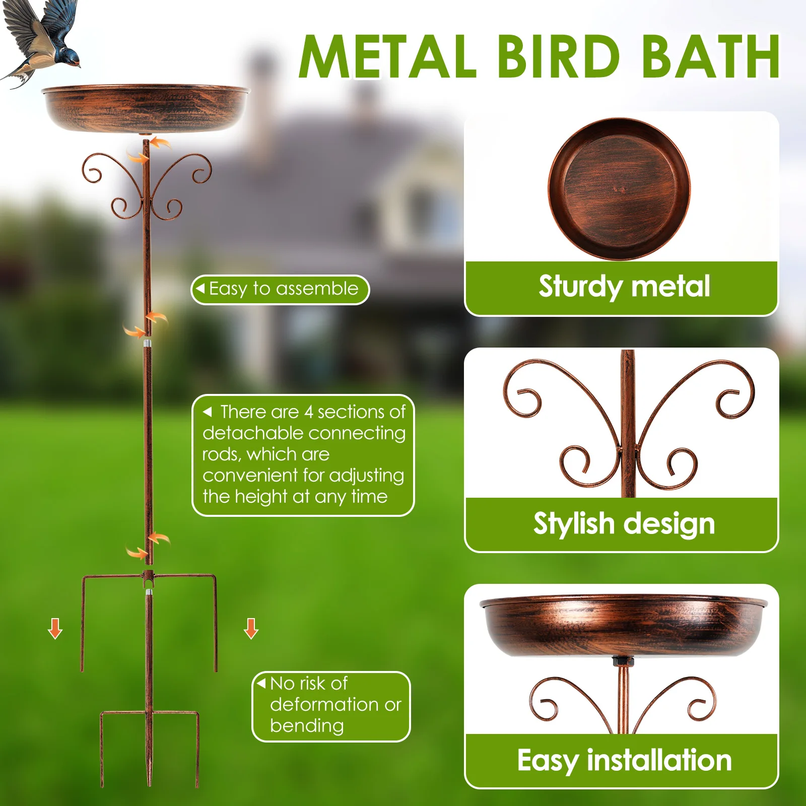 Metal Construction : Crafted from metal and coated with a safe protective layer , this bird bath is sturdy , rust resistant , and built for long term outdoor use
