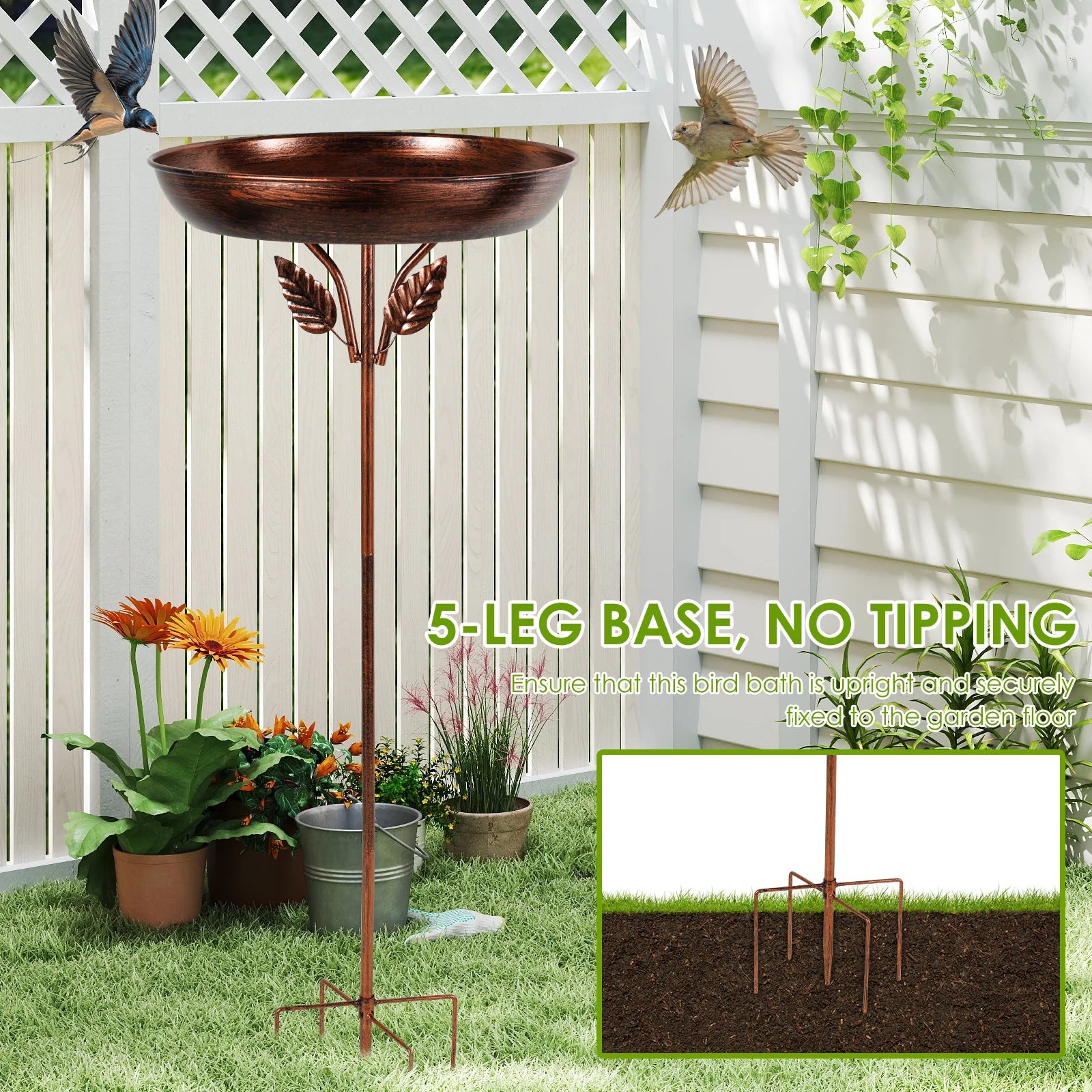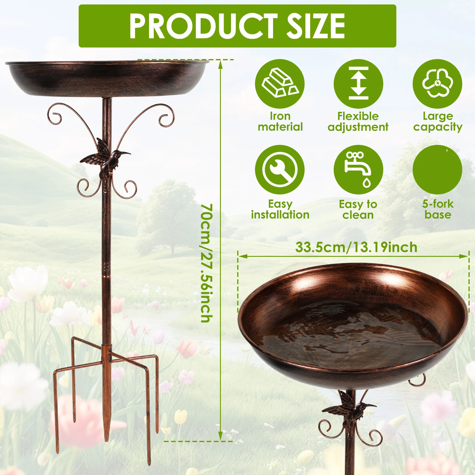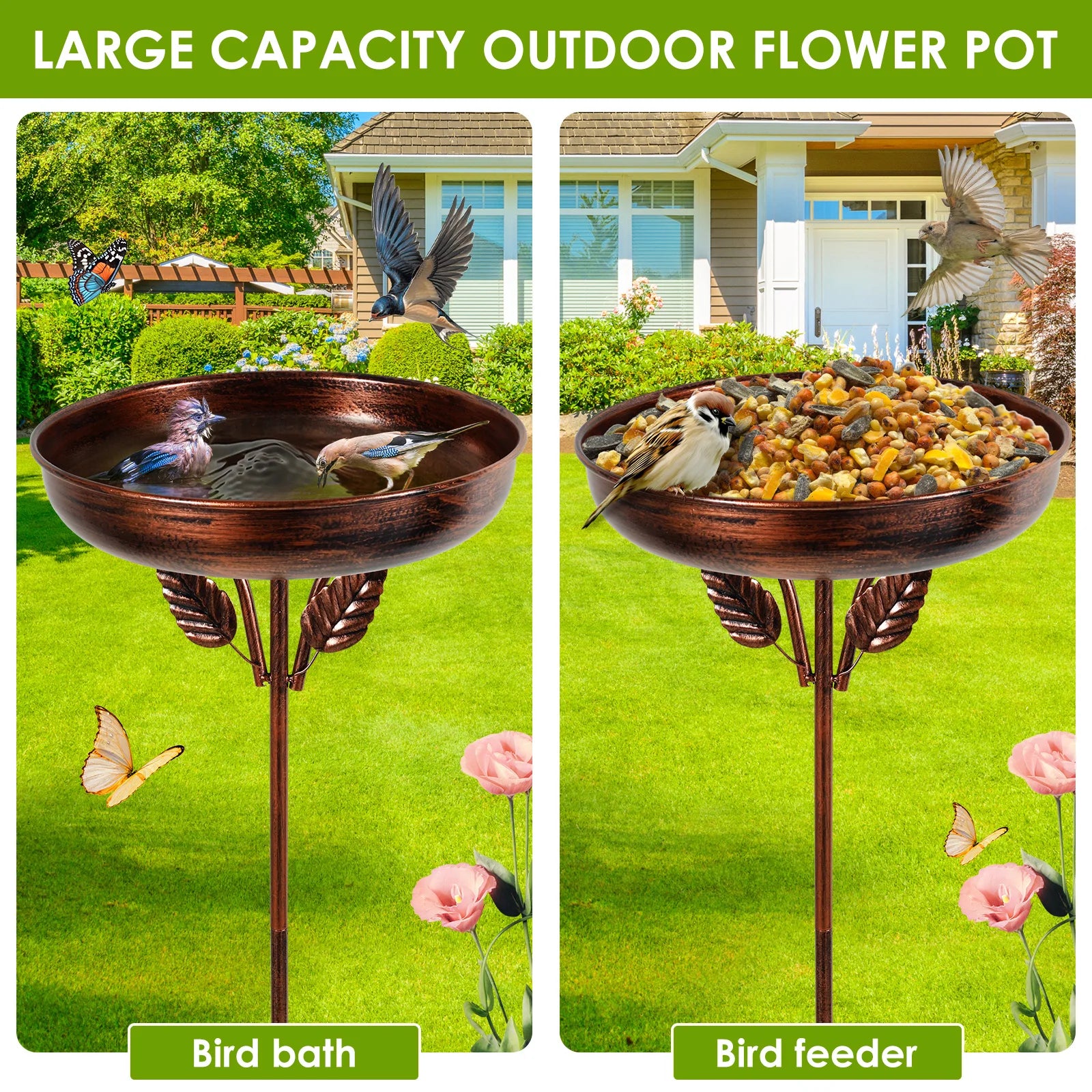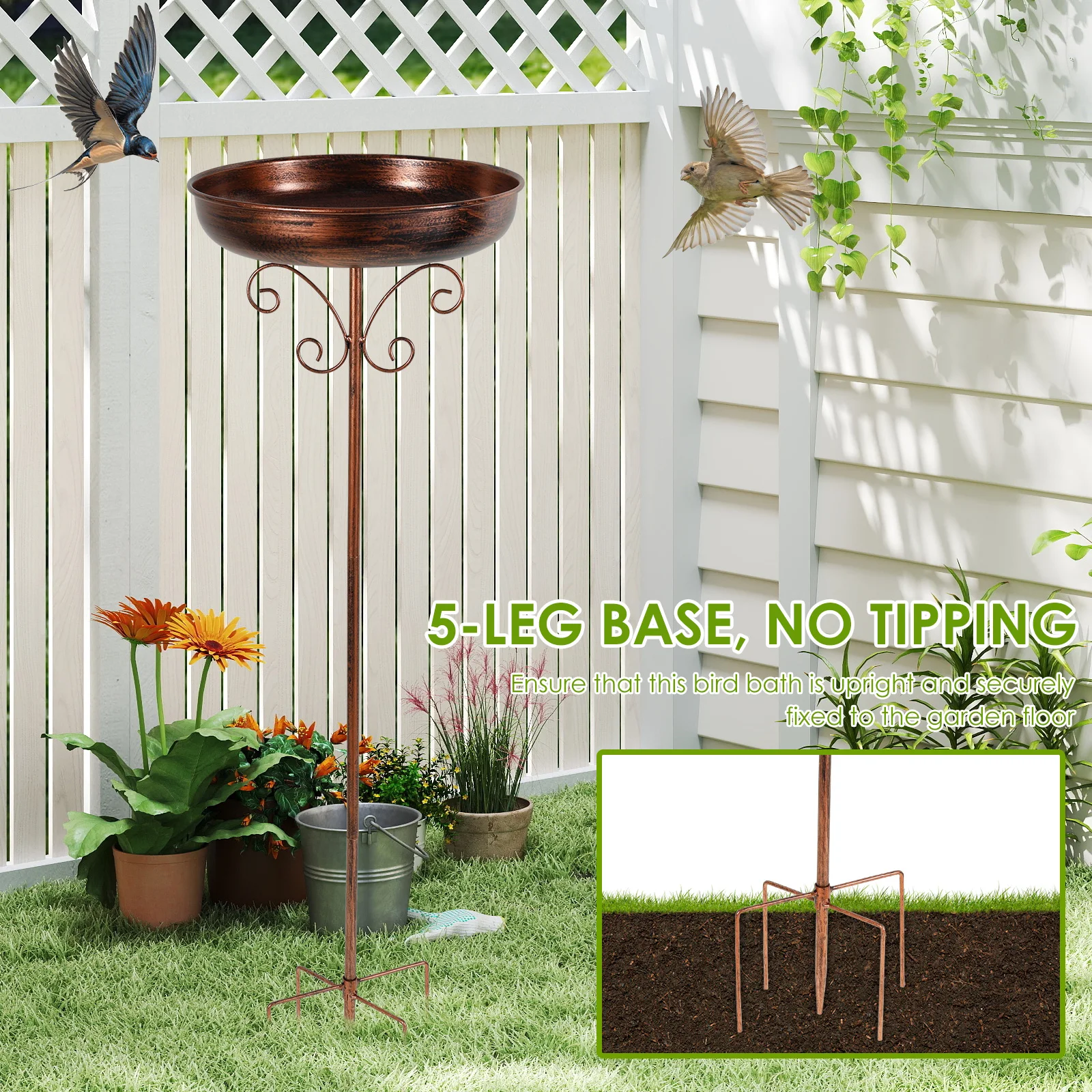 Bird Bath Feeder Bowl Metal Garden Birdbath with 5 Prong Stakes Outdoor Standing Bird Bath Bowls for Patio Outside Yard Decor