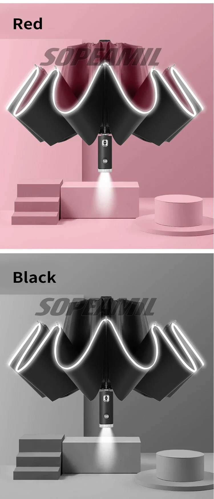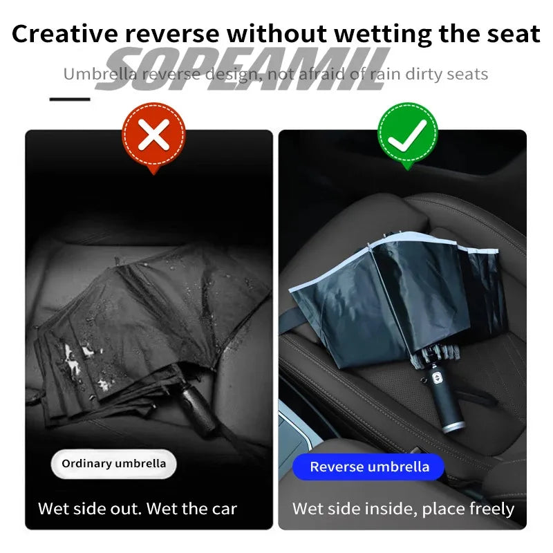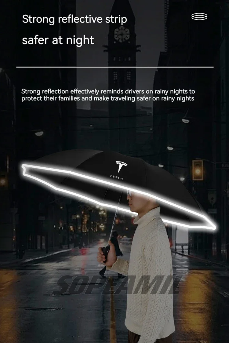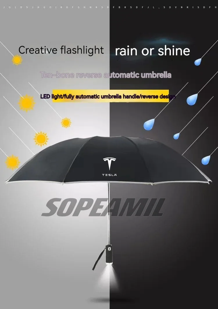 Car Led Light Automatic Folding Windproof Sunshade Umbrella For Tesla Model 3 Model Y Model S Model X Cybertruck Beast Roadster
