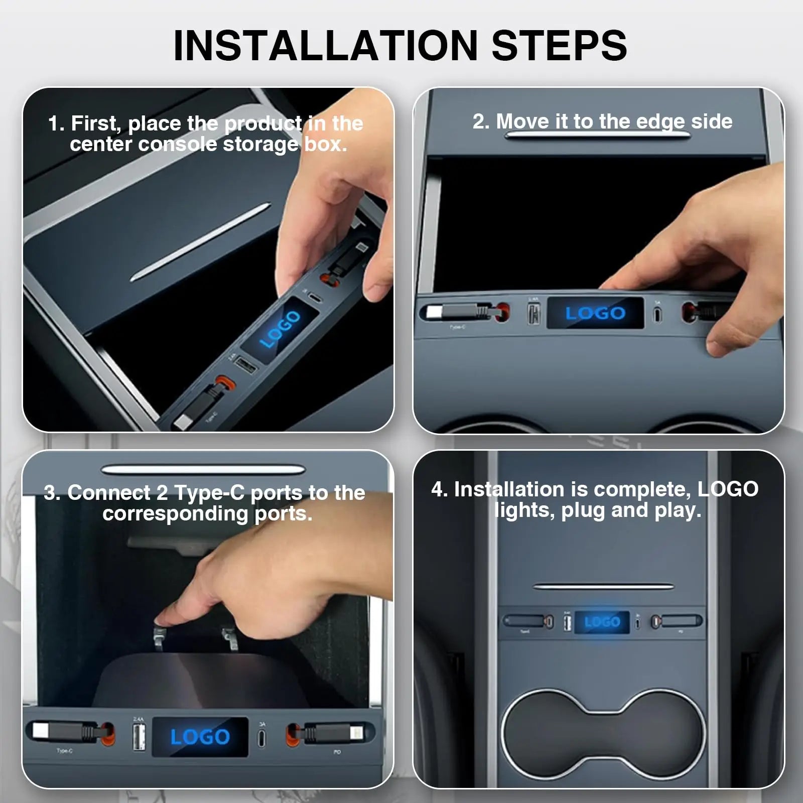 Car USB Charger Multi Port for 2021-2024 Tesla Model 3/Y,Multifunctional Tesla Accessories with Logo Gifts for Tesla Owners