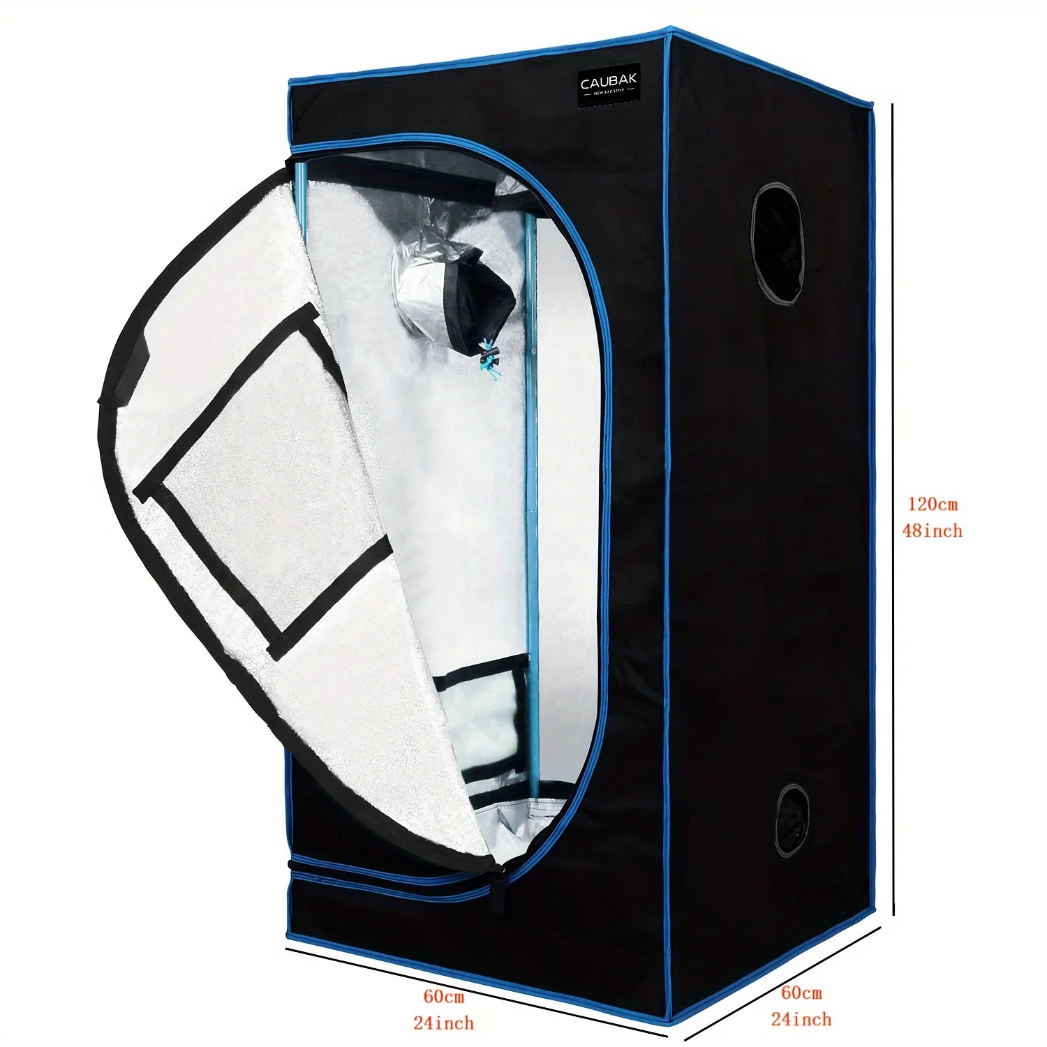 CAU 60x60x120cm Indoor Garden Greenhouse, Plant Growth Tent, Detachable Floor Tray and Toolkit (Blue-edged Blue Iron Pipes)