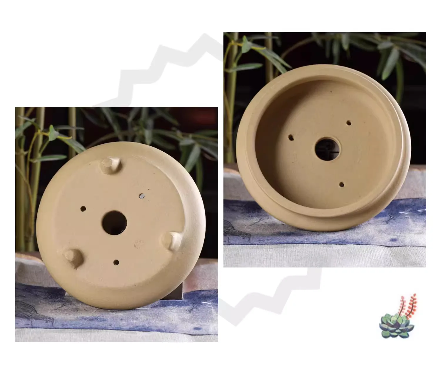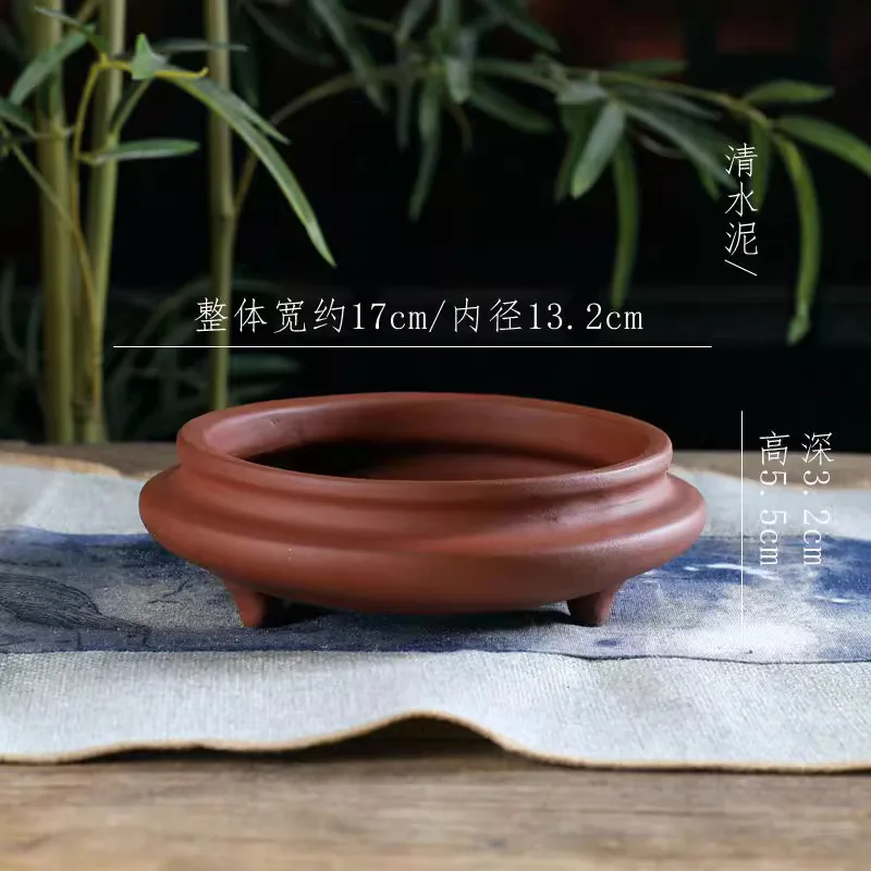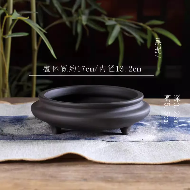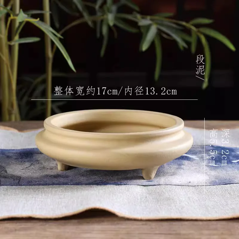 Ceramic Bonsai Pot, Flat Circle Pot, 4 Color,Purple Sand,Round Flower Pot, Home Decoration