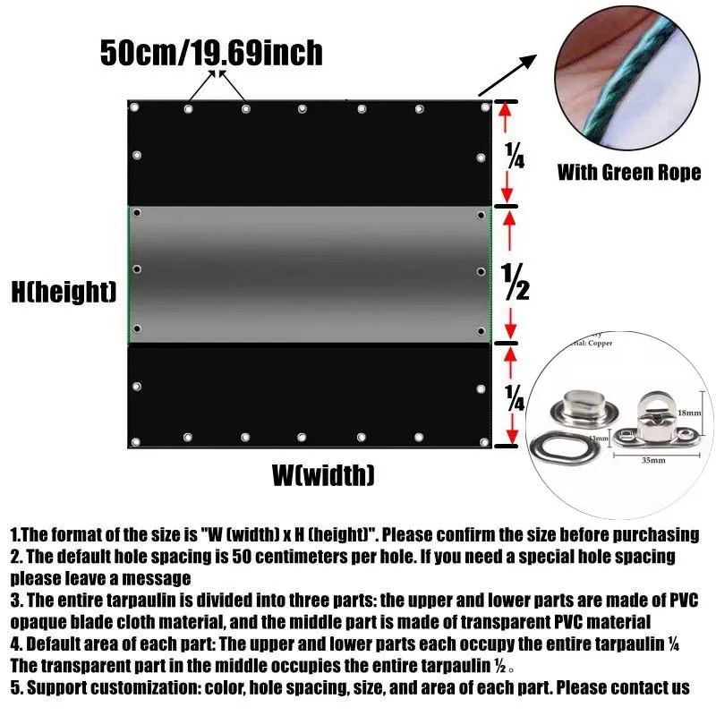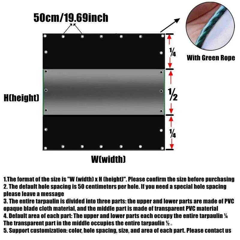 The transparent part in the middle occupies the entire tarpaulin ½。