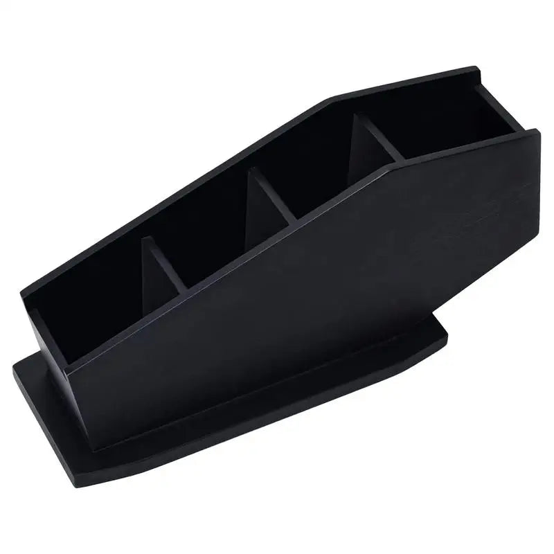 This makeup brush holder is made of sturdy wood with a coffin-like appearance, neatly organizing your brushes & accessories. Holds a variety of items & is a perfect present.