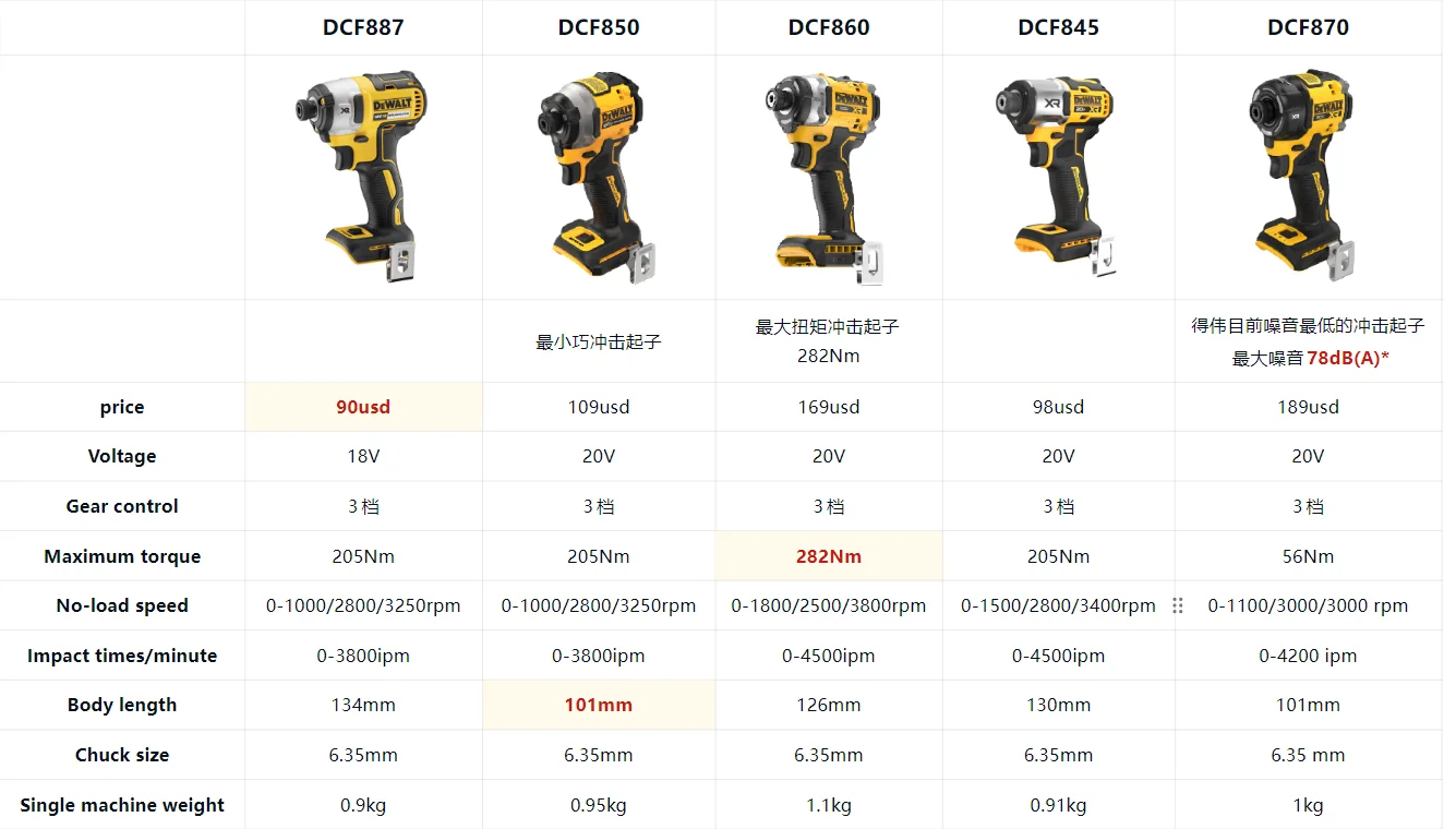 DEWALT DCF850 DCF887 20V Impact Driver 205NM Brushless Motor Cordless Rechargable Screwdriver Electric Impact Drill Power Tools