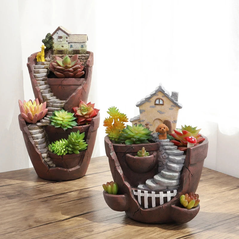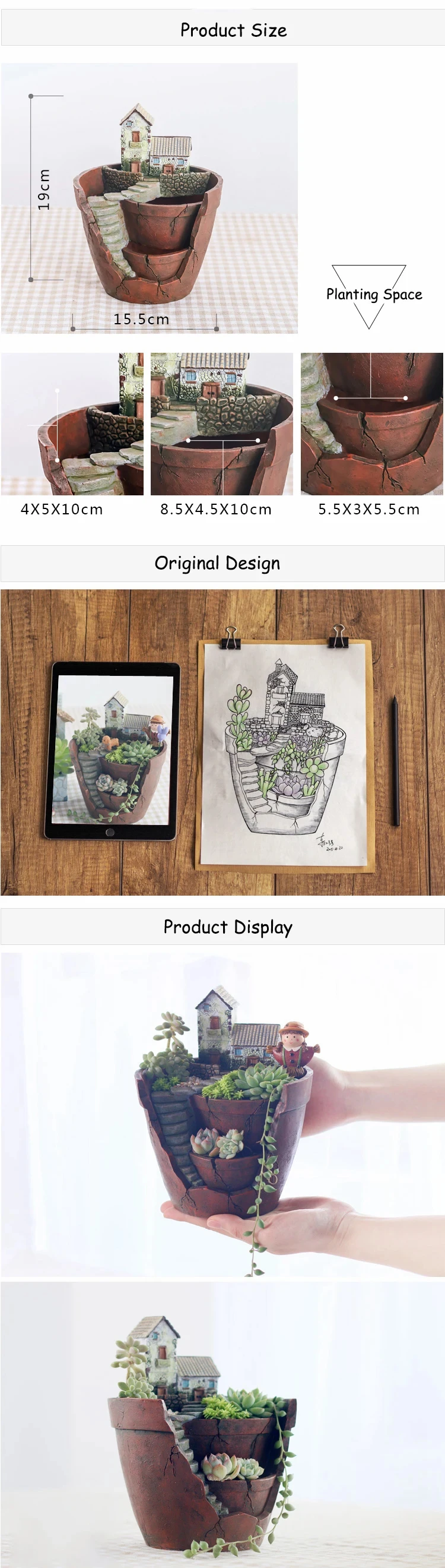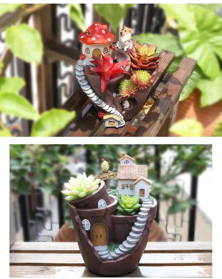 Dropshipping Garden Pot for Succulents Cactus, Creative Farmhouse Planter, Resin Flower Pots Fairy Garden Ornaments Home Decor