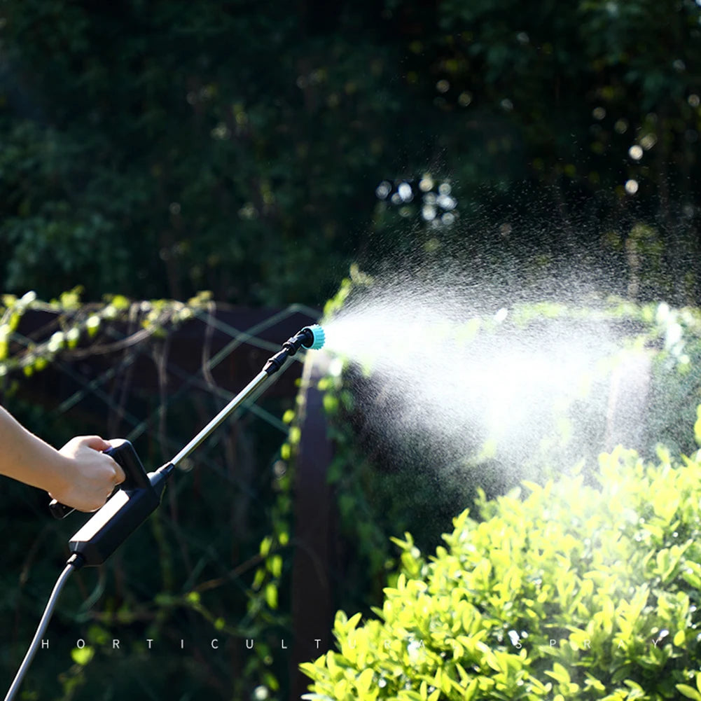 Feature: 1. Easy to Use: The electric spray can automatically water with one button, and can be closed by pressing it again. 2. Rechargeable Plant Spray Bottle: It can be charged with USB, and the powerful 2000 mAh battery capacity can work continuously for 2-3 hours after being fully charged. 3. Spray Mode: The nozzle has two spray modes, which can be switched between water mist and water column modes by rotating the nozzle. Replacing the extended nozzle can further expand the use of spray cans to meet different working requirements. 4. Practical Accessories: This plant spray is equipped with hoses and filter balls, so you don't need to always carry a weighing tank or water bag when watering. The filter ball at the bottom of the hose can filter the debris in the water, so you can use this electric spray in natural waters such as rivers and lakes. 5. Scope of Application: This garden spray is applicable to garden plant watering, indoor plant spray, car cleaning, air humidification, glass cleaning, etc. Specification: Origin: Mainland China Color: As shown Size: 51cm/20.07inch Pipe: 300cm/5m/8m Material: ABS+stainless steel Charging: USB charging Battery capacity: 2000 mA Duration: 2-3 hours Telescopic length of spray bar: up to 60cm Adjustable nozzle: Uniform atomization/water column spray
