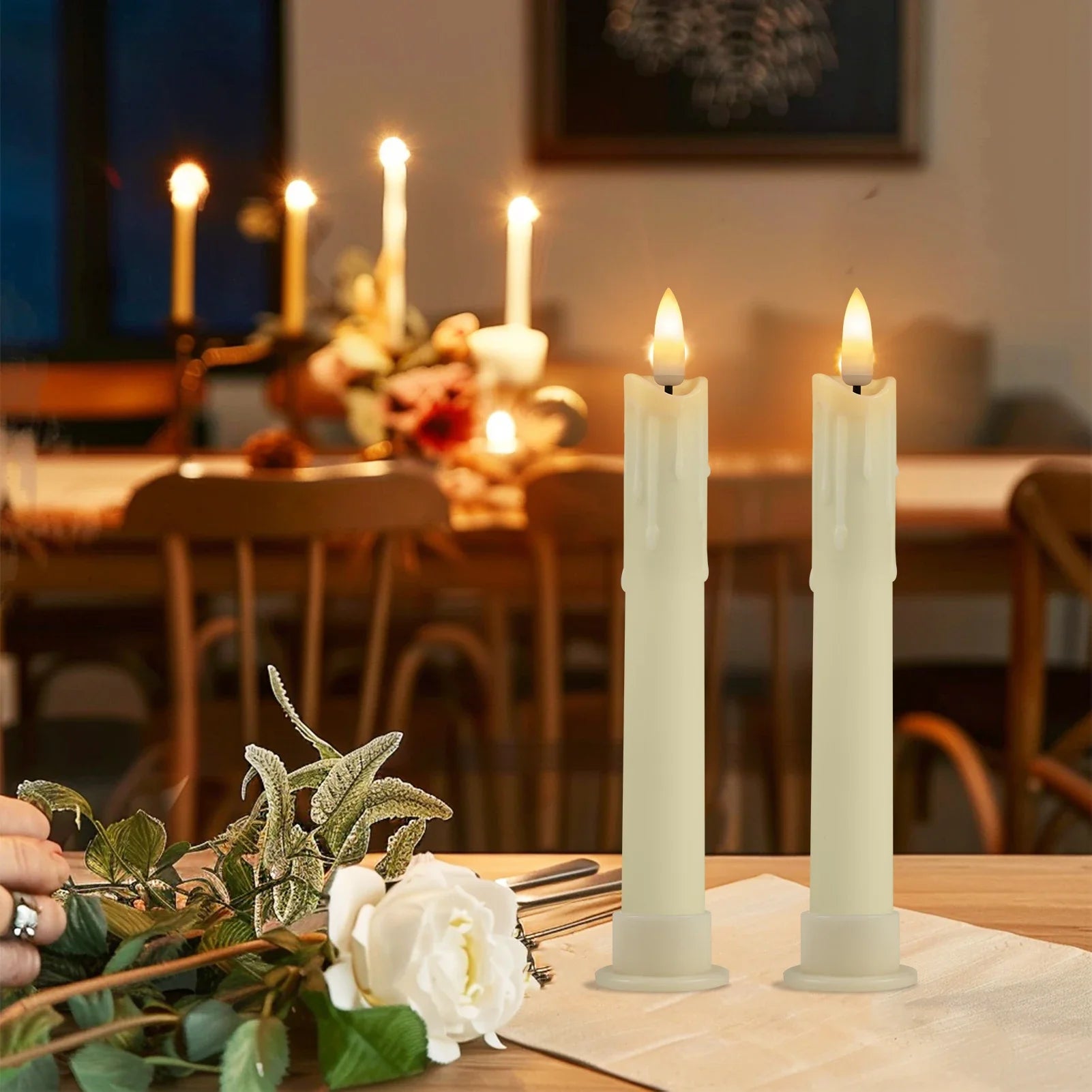 Real Wax Covered: The real wax-covered and burning drip wax shape shows the carefully designed appearance whether viewed from far or near. Not only does it have a more refined look than real candles, but it doesn't have to worry about the smoke, wax, and other hazards of real candles.