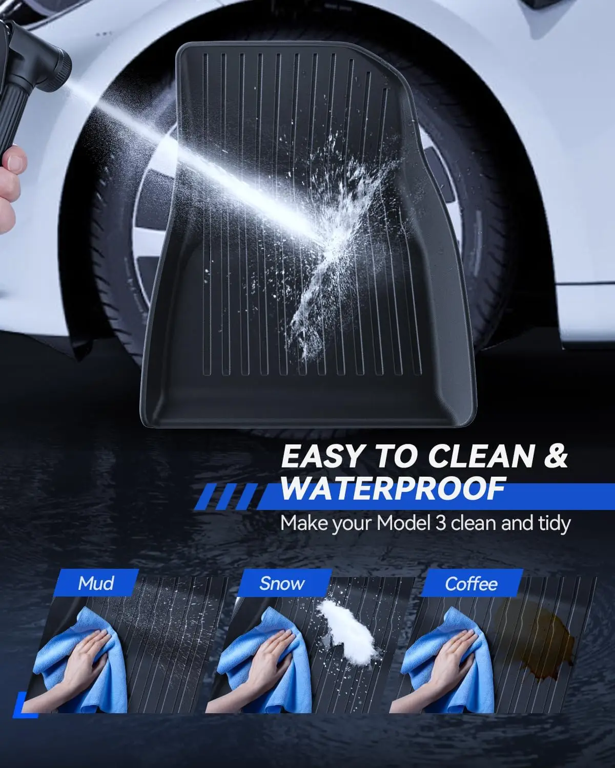 【Fitment】Through technical measurement, the floor mat is compatible with 3 2021-2025 , achieving perfect fit and all-round coverage