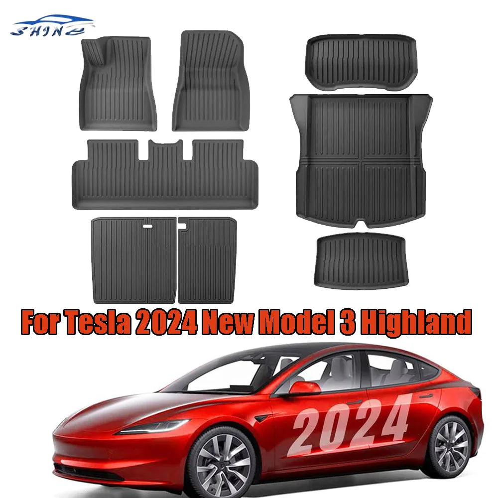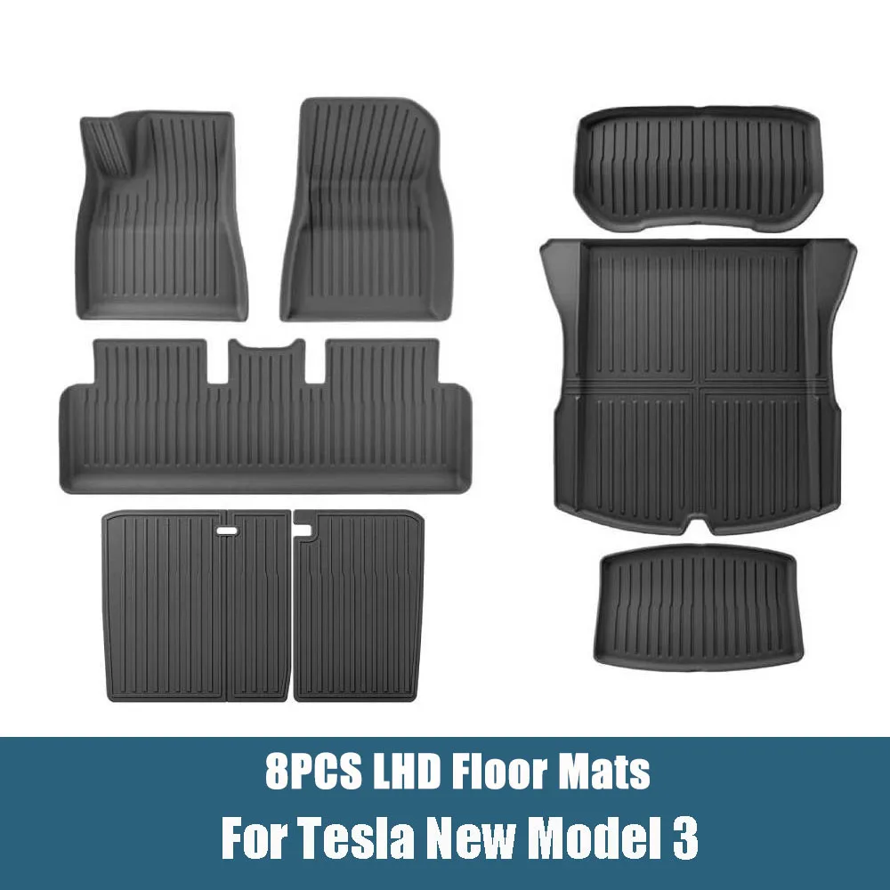 Floor Mats For Tesla Model 3 Highland 2025 All Weather Front Rear Cargo Liner Mat, Waterproof Anti-Slip Mats Accessories