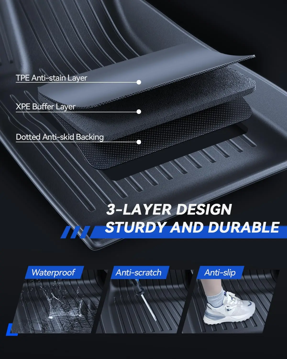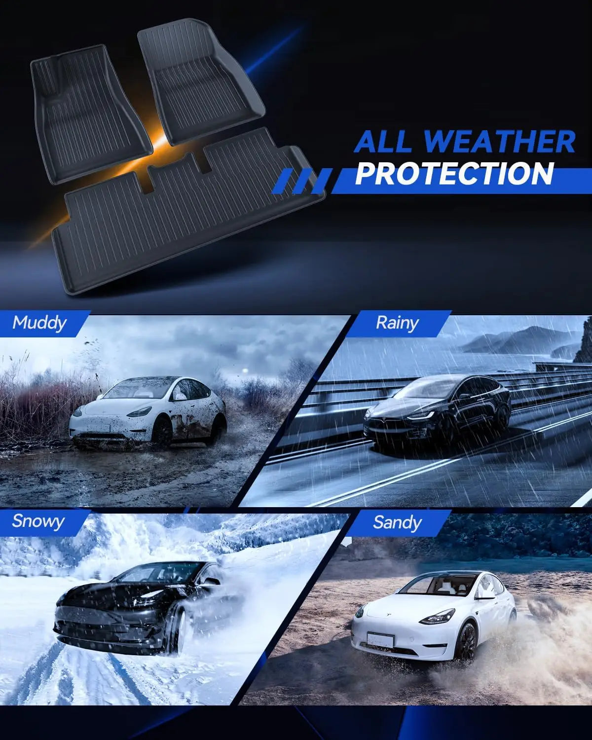 【Suitable for all seasonal climates】Made of high-quality TPE material, it is wear-resistant, anti slip, anti snow, waterproof, and anti sediment, suitable for any condition, providing your car with all-weather protection