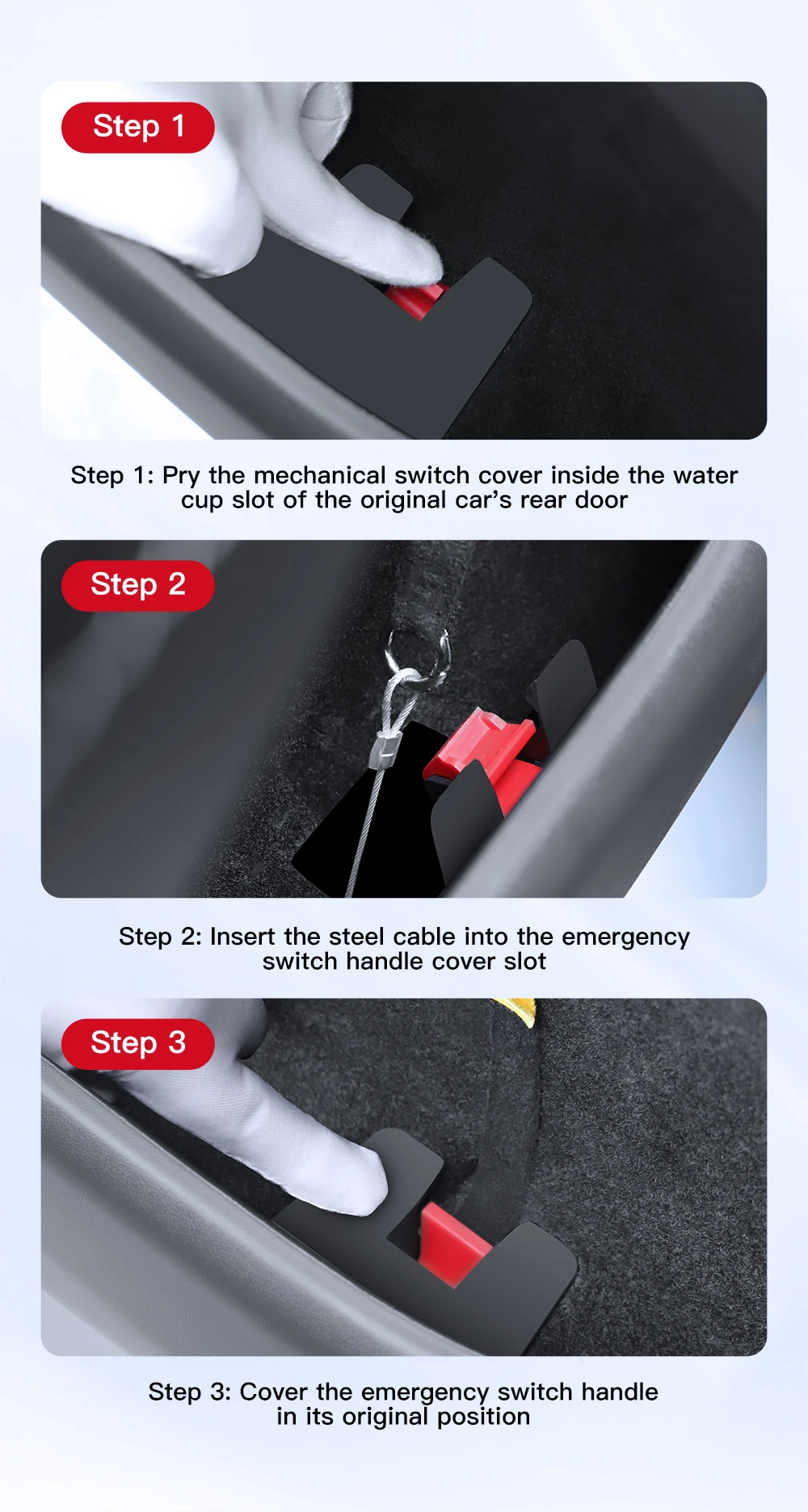 For Tesla Model 3 Highland Model Y 2024 2025 Rear Door Mechanical Switch Handle Emergency Puller Button Rope Car Accessories